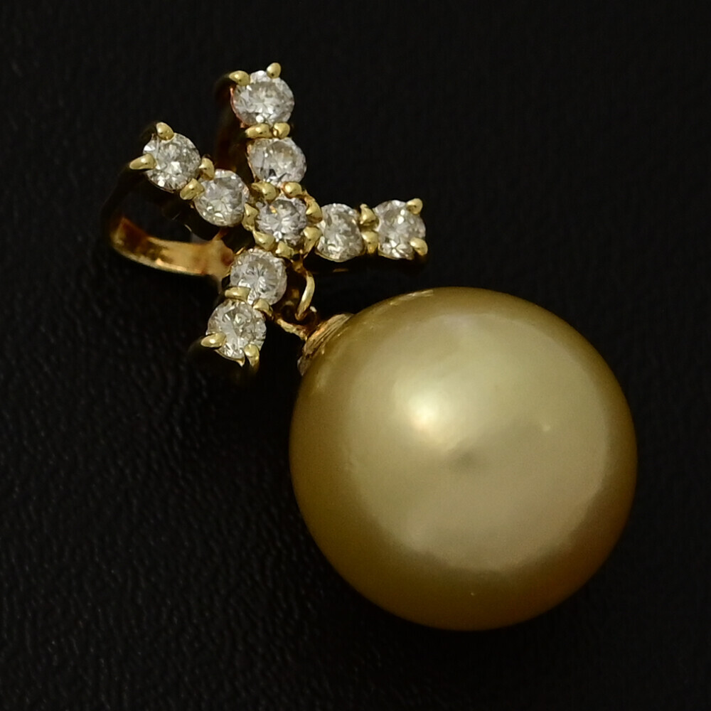 | 11.6mm/0.3ct/クロスモチーフ 1P 白蝶ゴールドリップ サウスシー ゴールドパール ダイヤモンド ペンダントトップ/K18YG/750-3.4g お問合せ番号 ■593693 (MY8A1072U) | |