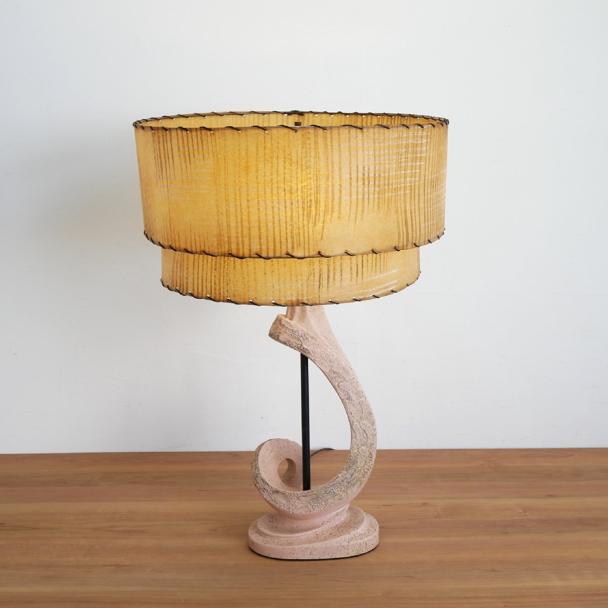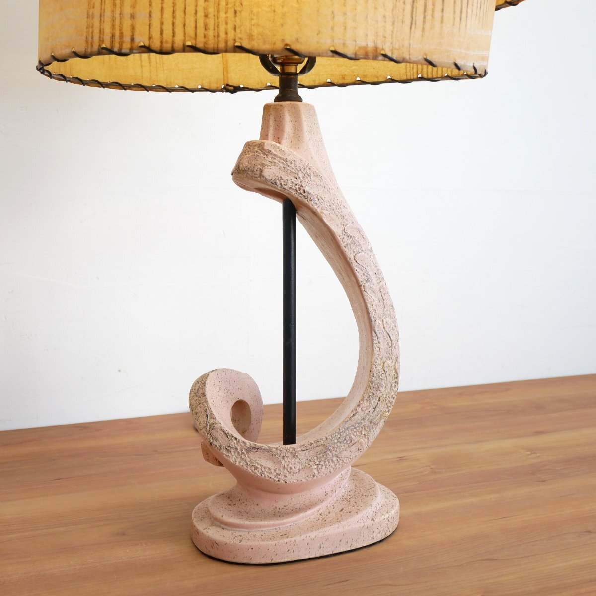 | 商品説明 explanation | ミッドセンチュリー期のテーブルランプです。 ※1950年代頃 本体は石膏製で、薄いピンクにゴールドで点状にペイントされています。 シェードは樹脂製で、模様が入っています。 電球は日本で市販されているLED(E26,40W相当)を使用しています。 希少なヴィンテージ照明を、お部屋のインテリアにいかがでしょうか。 |