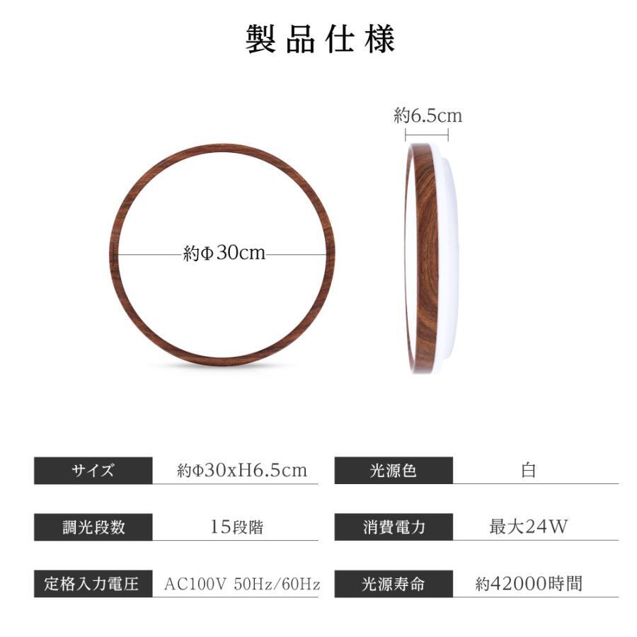 商品サイズ:Φ28xH6.5cm、カラー:ブラウン 調光:15段階、消費電力:24W