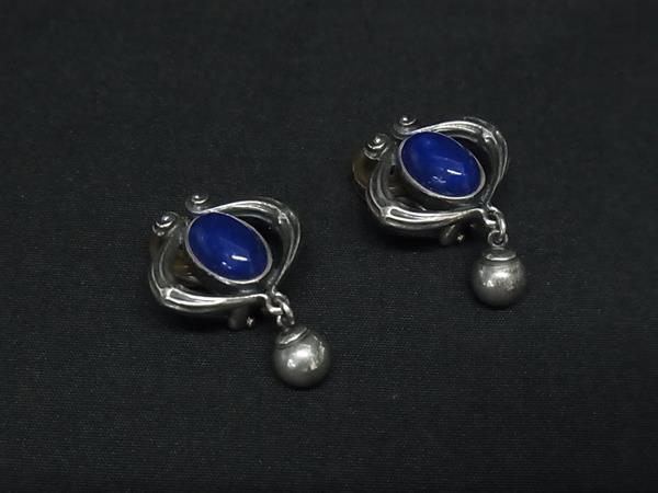 1円 GEORG JENSEN ジョージ ジェンセン SV925 カラーストーン クリップ式 イヤリング アクセサリー ネイビー系×シルバー系 FV3612