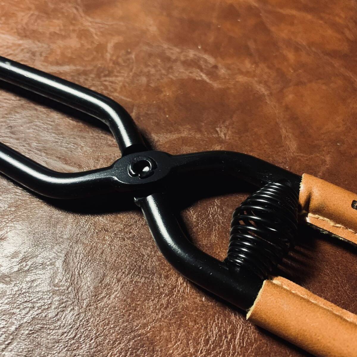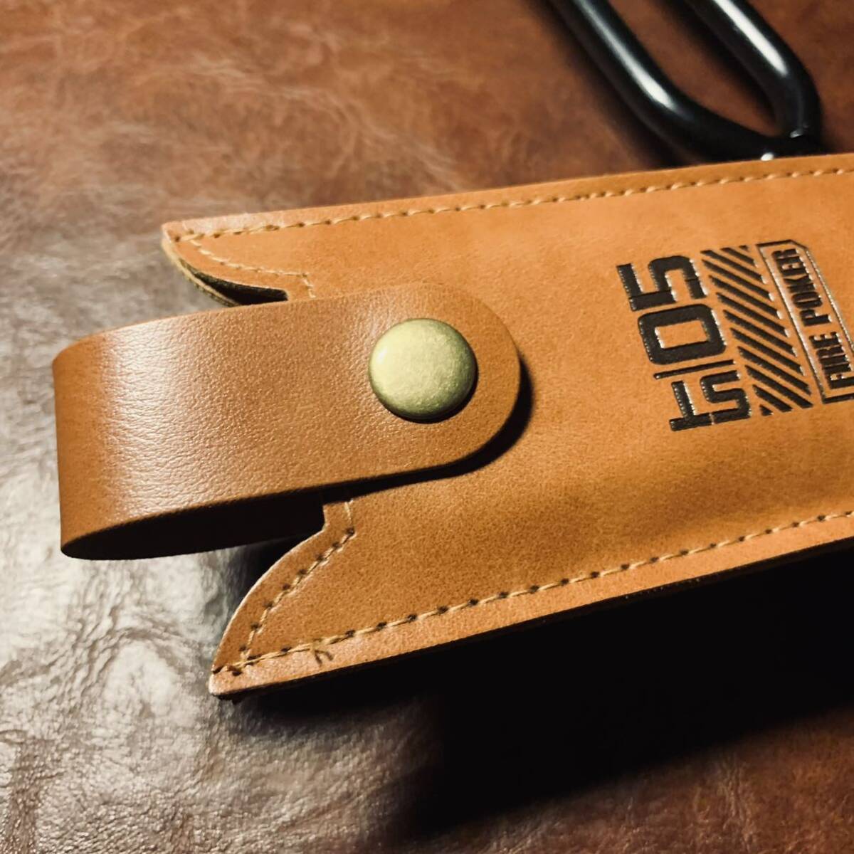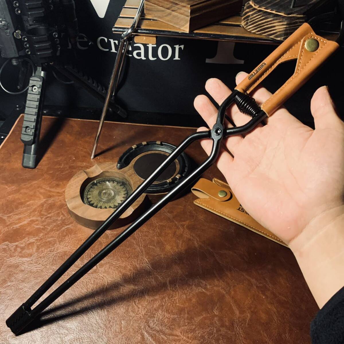 キャンプ用 超高品質 焚き火トング 薪バサミ ノコギリ状先端 長さ44cm アウトドア 野外登山 革製収納ケース付き 404g