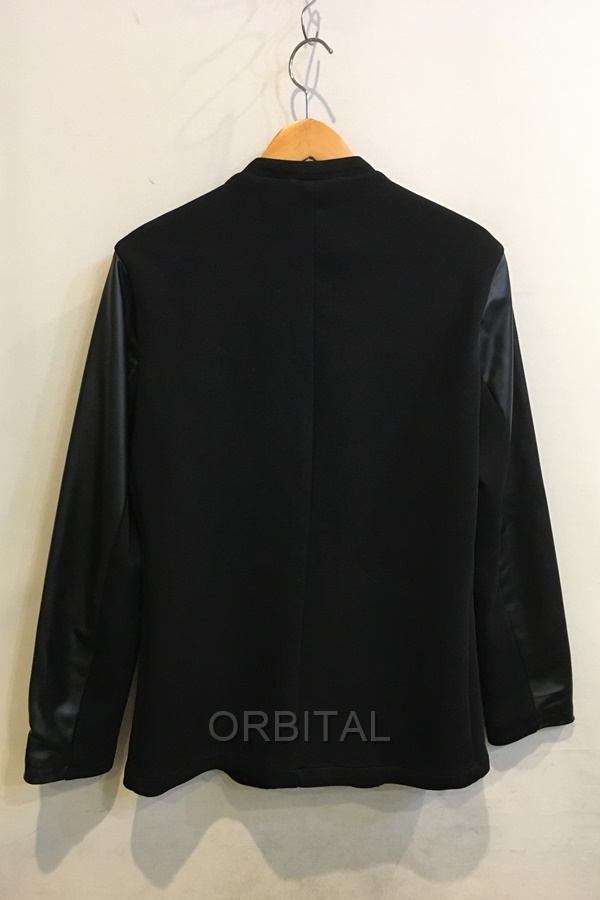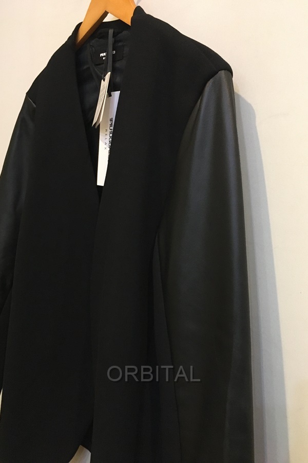 二子玉)1PIU1UGUALE3 RELAX ウノピゥウノウグァーレトレ レザースリーブノーカラージャケット 定価33,000円 メンズ L ※袖スレ