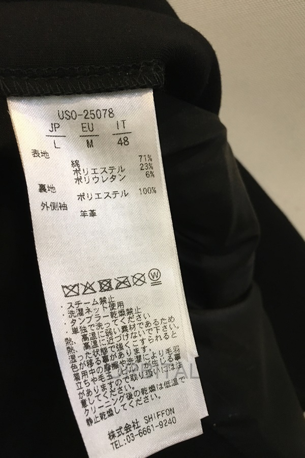 コットン71%ポリエステル23%ポリウレタン6%/ 袖:シープレザー100%