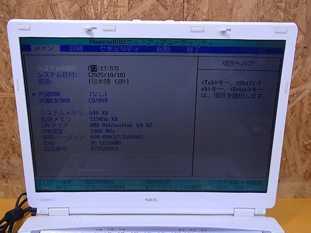 | 商品情報 | NEC 15.4型ノートパソコン PC-LL550MG Athlon64 TK-57 1.9GHz メモリ1GB HDD/OSなし |