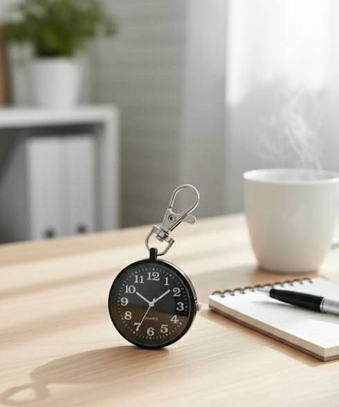 【送料無料】現役看護師さんも絶賛!多機能ナースウォッチ キーホルダー型 懐中時計 黒 シンプル クリップ式 蓄光文字盤 秒針付き