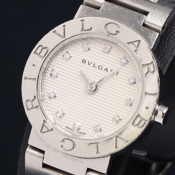 1円 箱付 稼働 ブルガリ BB23WSS ホワイト文字盤 12P QZ ブルガリブルガリ レディース腕時計 0055110 10RKT KMR