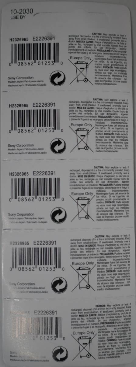 SONY SR626SW(377) 1.55V 酸化銀電池 ●腕時計などに一番多く使われている耐漏液性能向上、信頼性の高い SONY製酸化銀電池SR626SW(377)です。 1シート5個入りからのバラ売り提供です。 電池は1個毎パッケージです、電池には使用推奨期間の刻印はありません (使用推奨期間表示はシートの上部のみです、個別には表示されてません) ●下記型番はすべて表記の違いだけです、全て同じ規格のある互換電池です安心してお求めください。 ●SR626SW、(SR626SH)、 SR66 、E377 、V377)LR626 、(L626)、LR66 基本的に、同じ型番ならメーカーが違っても互換性があります。 ●シリコンウォッチや腕時計、ゲームなどで最も使われている型番の電池です。 時計など、使用済みの電池を取り出し、上記型番が書かれていれば、使用可能です。 仕様 メーカー:SONY 種類:ボタン型酸化銀電池 型番:SR626SW(377) 公称電圧:1.55V サイズ:6.8×2.6ミリ 重量:1.1グラム 使用推奨期間:2030年10月 ■英字は規格(電圧)、数字は電池のサイズを表しています。 「L」と「S」は1.5Vでサイズが合えば使用可能です、「C」は3Vです サイズの同じものがあります電圧が違います、故障の原因になります使用しないでください。 「L」アルカリ電池(1.5V)、「S」は酸化銀電池(1.5V) 「C」は二酸化マンガンリチウム電池(3V) 「R」はR(円形)の意味です、ボタン電池、コイン電池の頭の英字○Rになります。 3桁の数字がついているものは、最初の1桁が直径、下2桁が厚さを表しています。 例えば 「626」 であれば、直径が6.8mm、厚さが2.6mmになります。 4桁の数字がついているものは、最初の2桁が直径、下2桁が厚さを表しています。 例えば 「2032」 であれば、直径が20mm、厚さが3.2mmになります。 数値をそのまま書くのではなく、固有の記号が定められている。ボタン電池のものは以下のとおり。 R41(7.9×3.6mm)R43(11.6×4.2mm)R44(11.6×5.4mm)R54(11.6×3.05mm)R55(11.6×2.05mm) R70(5.8×3.6mm) ●W表記 ・・・ 主にデジタル時計などのハイレートタイプ(強電流向き) 末尾のW以外に「H」もハイレートタイプです ●SW表記 ・・・主にアナログ針式時計などのローレートタイプ(弱電流向き) ●他のボタン電池も出品しています(AG0~AG13)の旧名称でお知らせください ●ボタン電池の互換表 AG0(379A D379 379 521A LR521 SR521SW LR63)サイズ:5.8×2.15 AG1 (LR60 CX60 364A 621A LR621 SR621W)サイズ:6.8×2.15 AG2 (396、 397、 LR59、 LR726 、612 、196、 D396、 D397) サイズ:7.9×2.6 AG3(G3A、V3GA 、392 、SR41、192、CX41、L736、GP192)サイズ:7.9×3.6 AG4(LR626 、(L626)、LR66 、SR626SW、(SR626SH)、 SR66 、E377 、V377)サイズ:6.8×2.6 AG5(LR48、 L754、 393、 393A 、SR754 、SR48、 RW28)サイズ:7.9 X 5.4 AG6 (371A、 LR920、CX69、SG6、SR69 、LR69、SR920、171、371 ) サイズ:9.5 X 2.1 AG7(LR927 LR57 395 395A )サイズ:9.5 X 2.6 AG8(CX191、391A、LR55、 LR1120、 LR1120W)サイズ: 11.6×2.1 AG9(CX194、G9、394、394A、 LR936 、LR45)サイズ:9.5 X 3.6 AG10(LR1130,189、D189A、LR54、RW89、V10GA、BLR54、L1131、AG10、89A、G10A) サイズ:11.6×3.1 AG11(LR42、L721、362、SR721、162)サイズ:7.9×2.1 AG12(386A、CX186、186、RW84、LR43 、V12GA、BLR43、L1142、G12A、86A)サイズ:11.6×4.2 AG13(LR44/AG13/V13GA/357A/SR44 / A76/LR1154) サイズ:11.6×5.4 | ||||