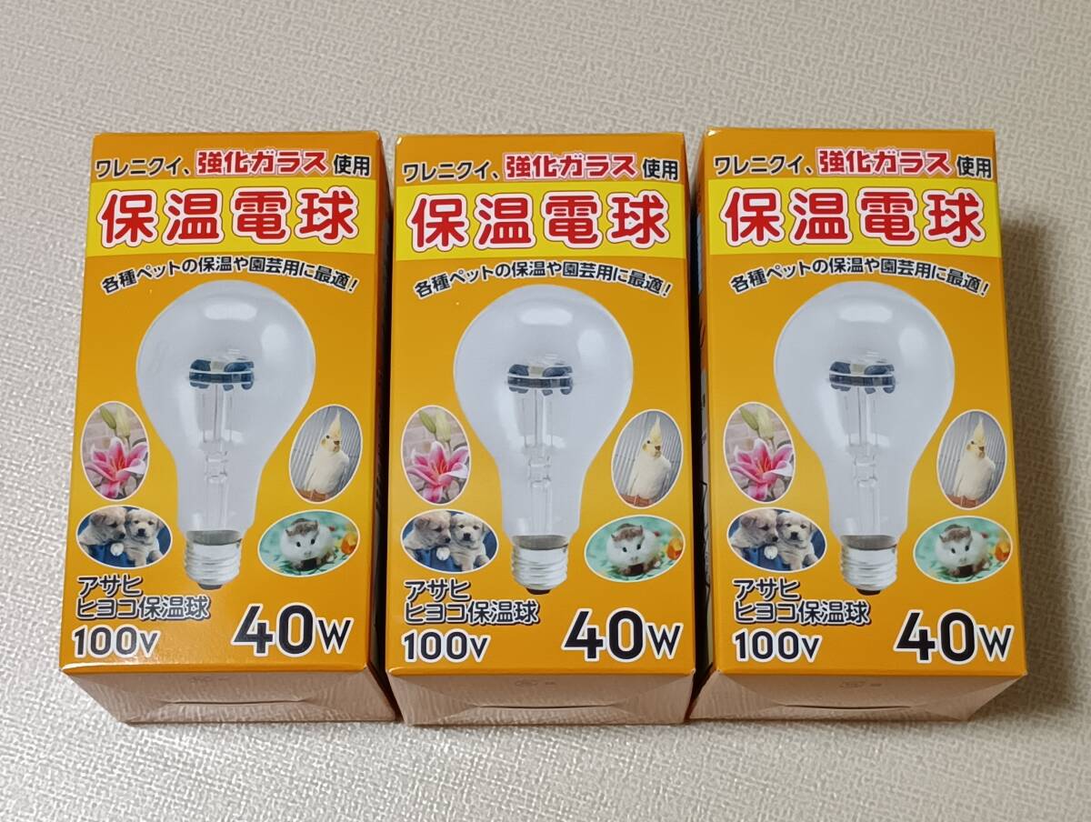 未使用♪ アサヒ 旭光電機 保温電球 ヒヨコ保温球 屋内用 各種ペットの保温 40W 3個セット♪