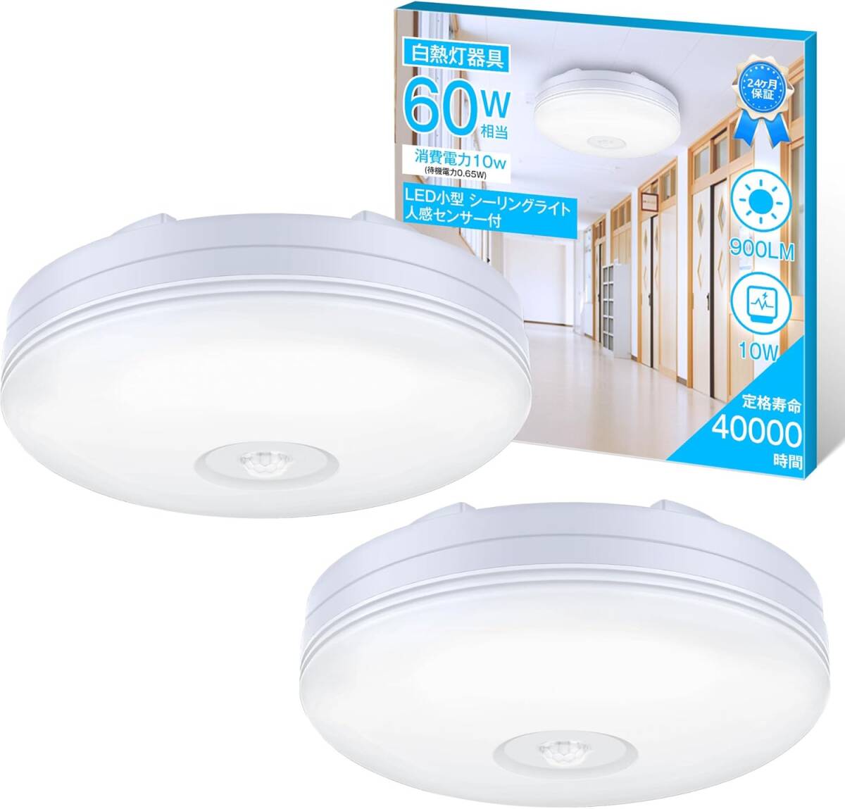 小型 人感センサー付 LEDシーリングライト 照明器具 廊下 玄関灯 5000K 60W相当 天井 簡単取付 昼白色 900lm 2個セット