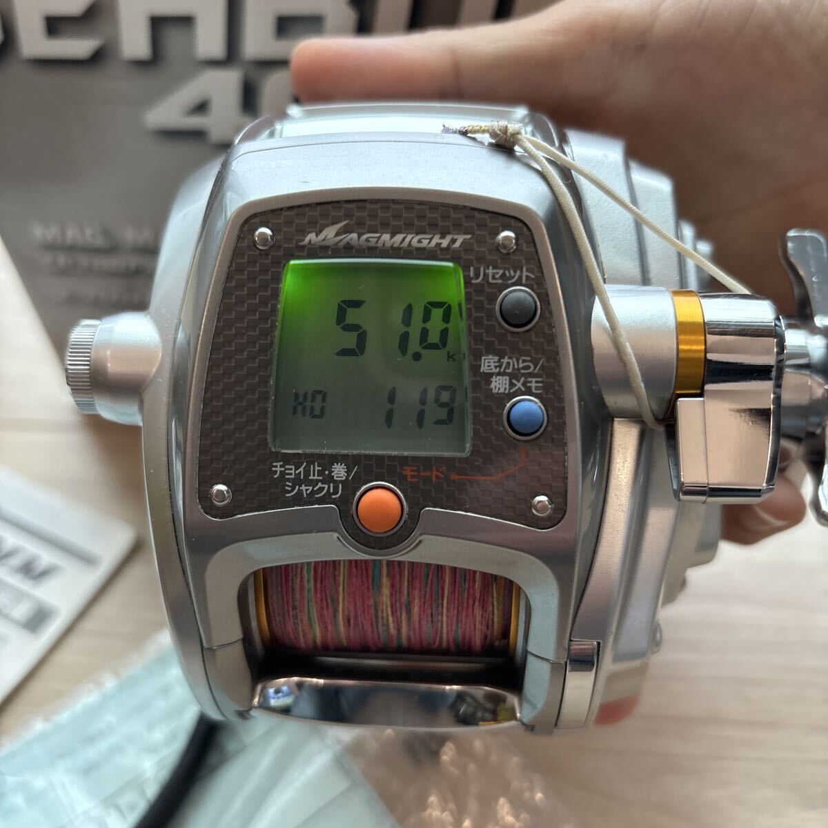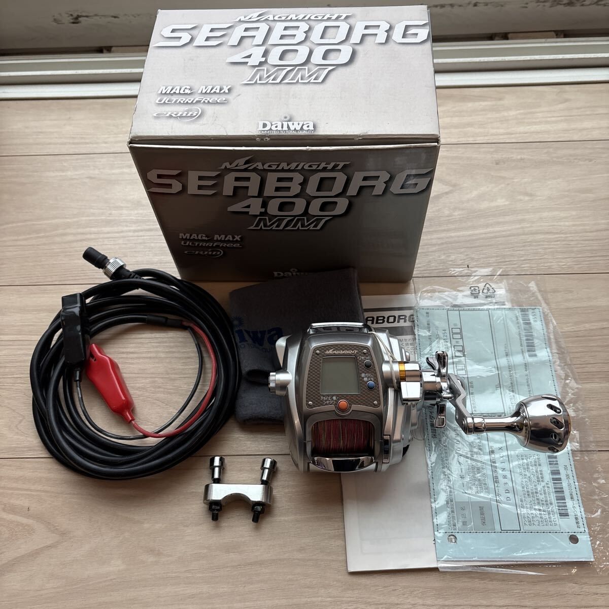 ご覧頂きしてありがとうございます。 ダイワ シーボーグ400MM の出品です。実釣巻き上げ長さ51k使用時間119時間、別売りのロッドクランプもお付けします。ラインは5号300m巻いていますが少し高切れしてます。まだ使えますがおまけです。ウルクスミッドエアーのハンドルノブが付いています。純正のノブはありません。ワサラクラスならガン巻きで上げられるパワーあります。個人的には古いながらも美品です。写真で判断できる方のみご入札お願いします。