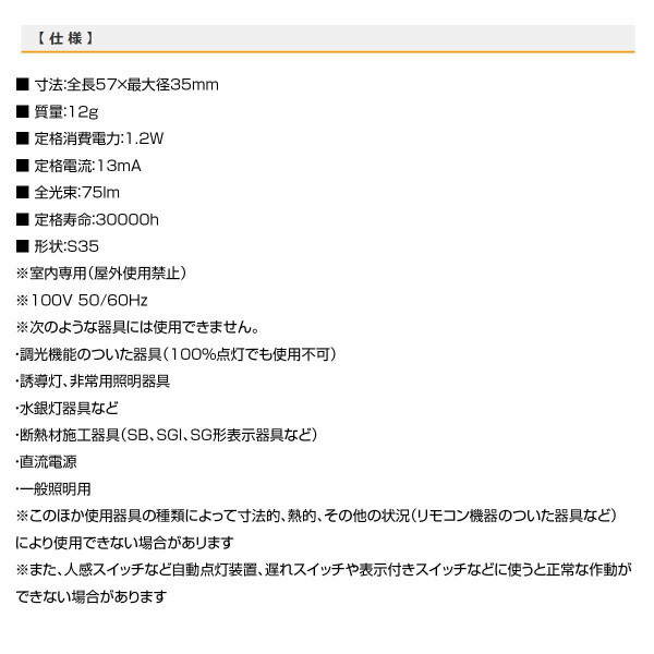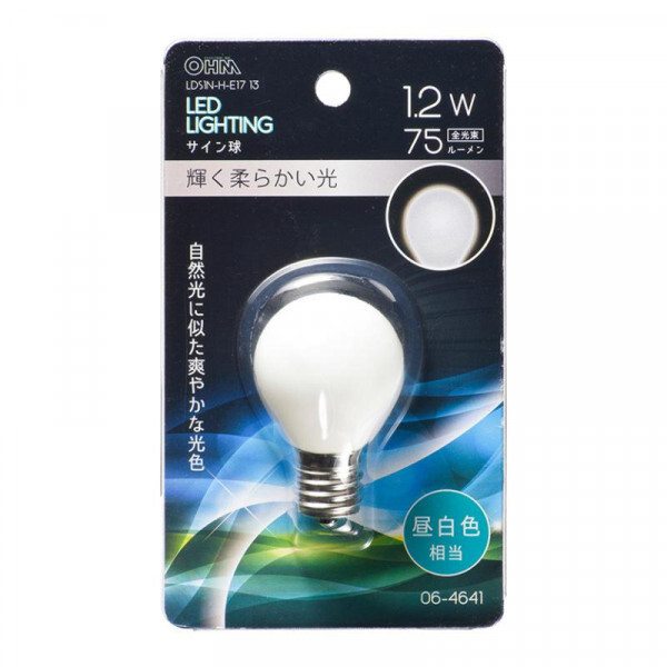 | 仕様 | LED電球サイン球形装飾用 自然光に似た爽やかな光色 昼白色相当 口金はE17 |
