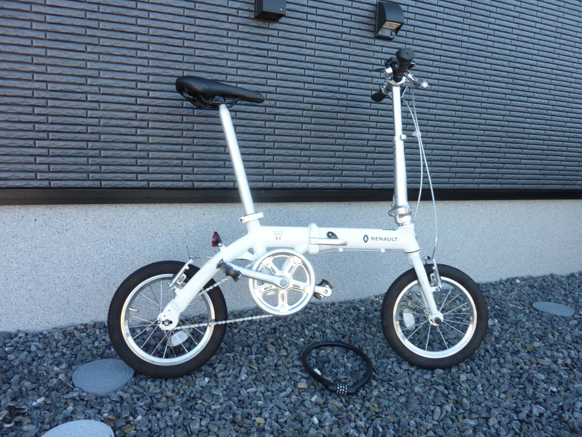 取りに来られる方、愛知県高浜市。 軽量アルミフレーム 14インチ コンパクト折りたたみ自転車 本体重量8.3k。ペダルは折り畳み式に取り換えてあります。傷が有りますがあまり乗っていません。