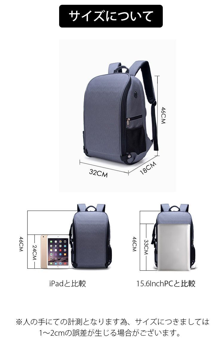 ■盗難防止、防水性、通気性、ほとんどのデジタル一眼レフカメラと互換性のあるカメラバックパック。