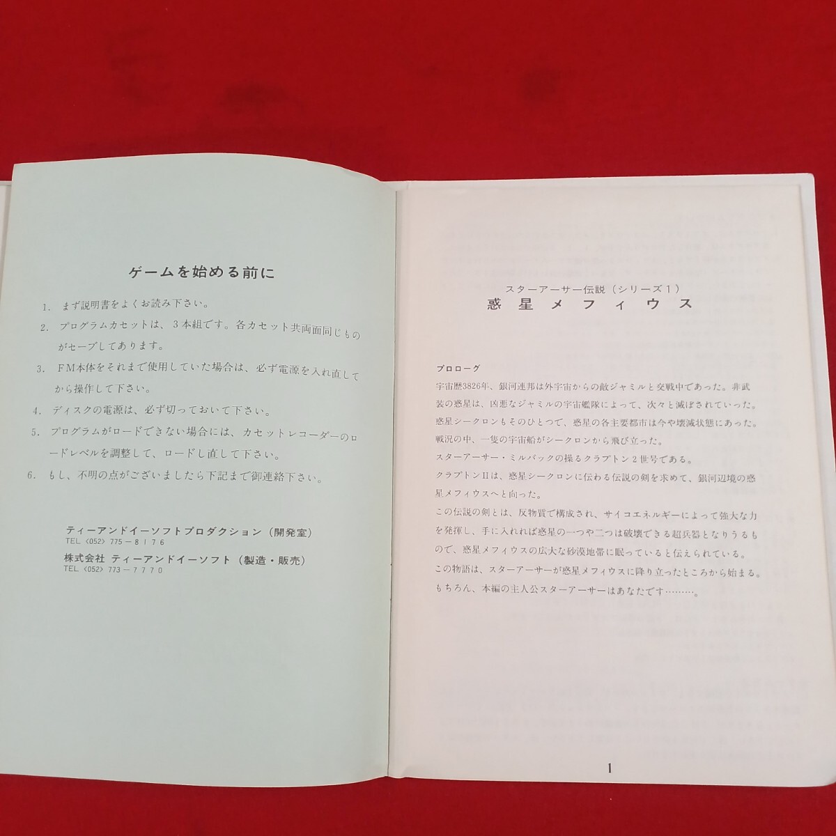FM-7用ゲームソフト スターアーサー伝説 Ⅰ 惑星メフィウス カセットテープ版 T&E SOFT