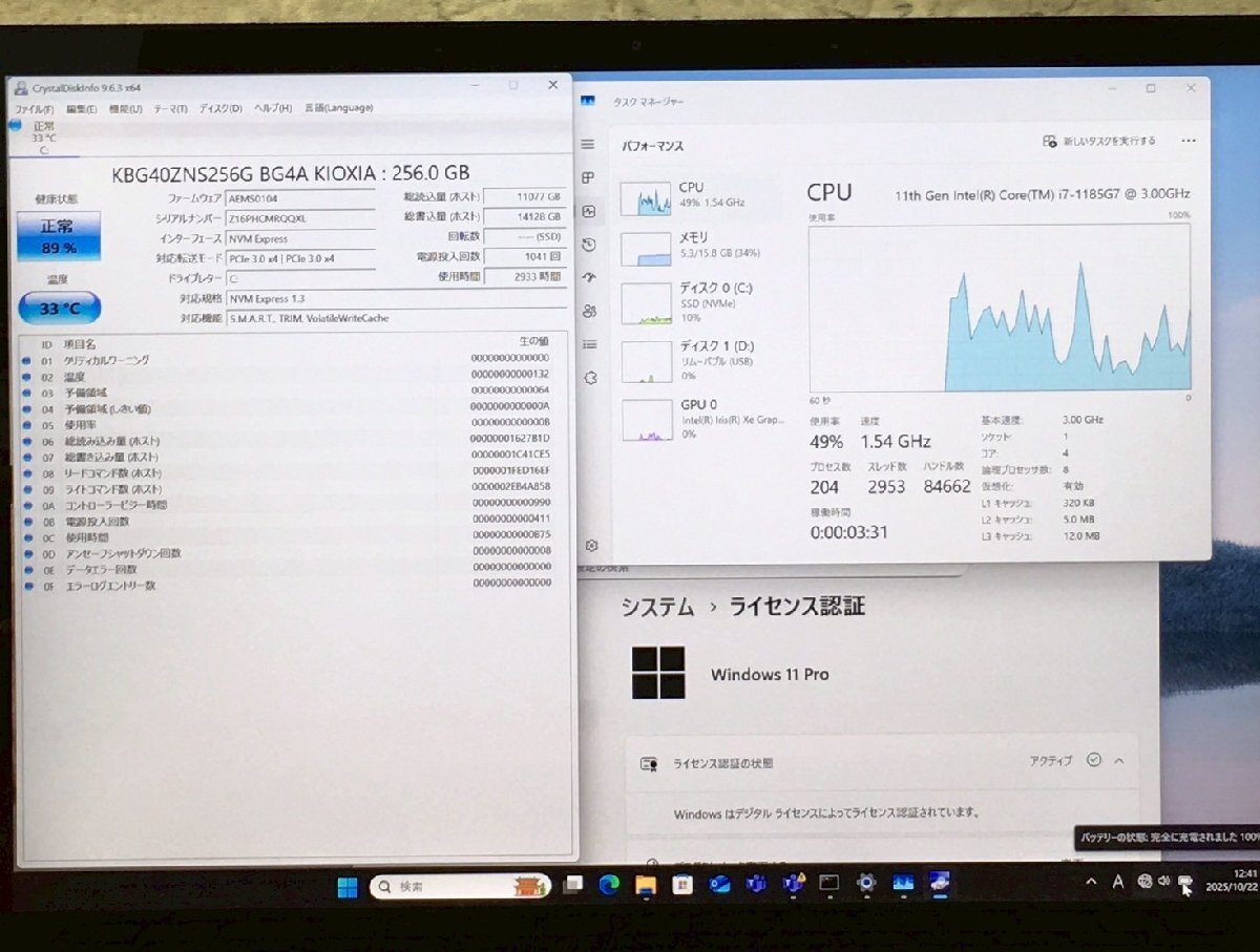 | ライセンス確認 | 〇 | CrystalDiskinfo | 〇 |
