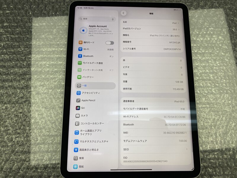 EM218 SIMフリー iPad Pro 11インチ 第2世代 Wi-Fi+Cellular A2230 シルバー 128GB ジャンク ロックOFF