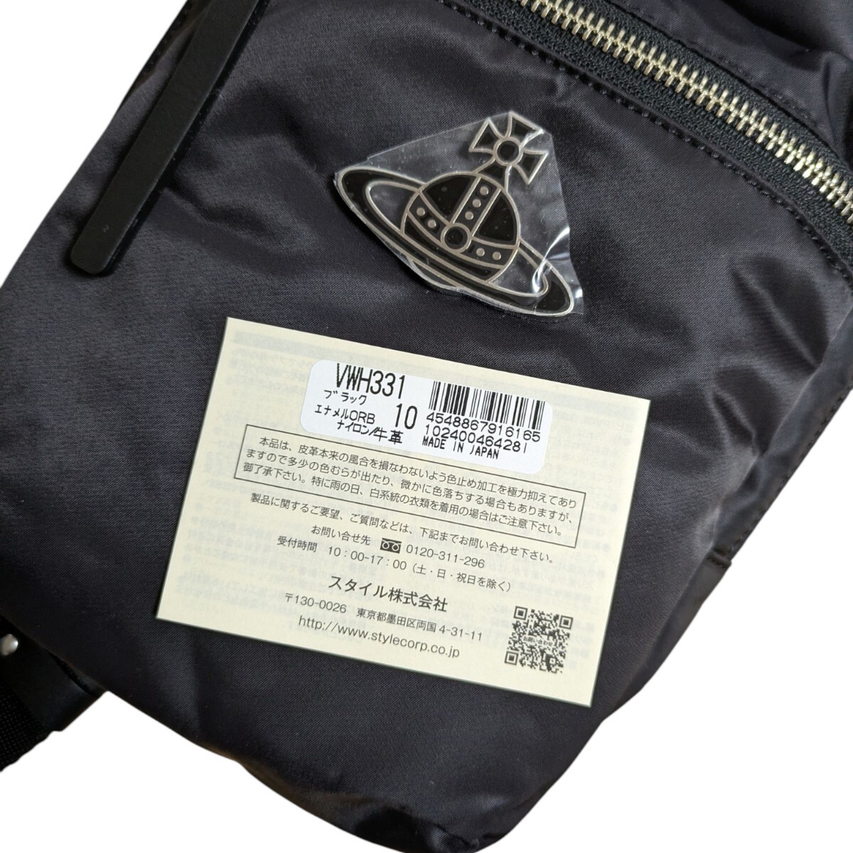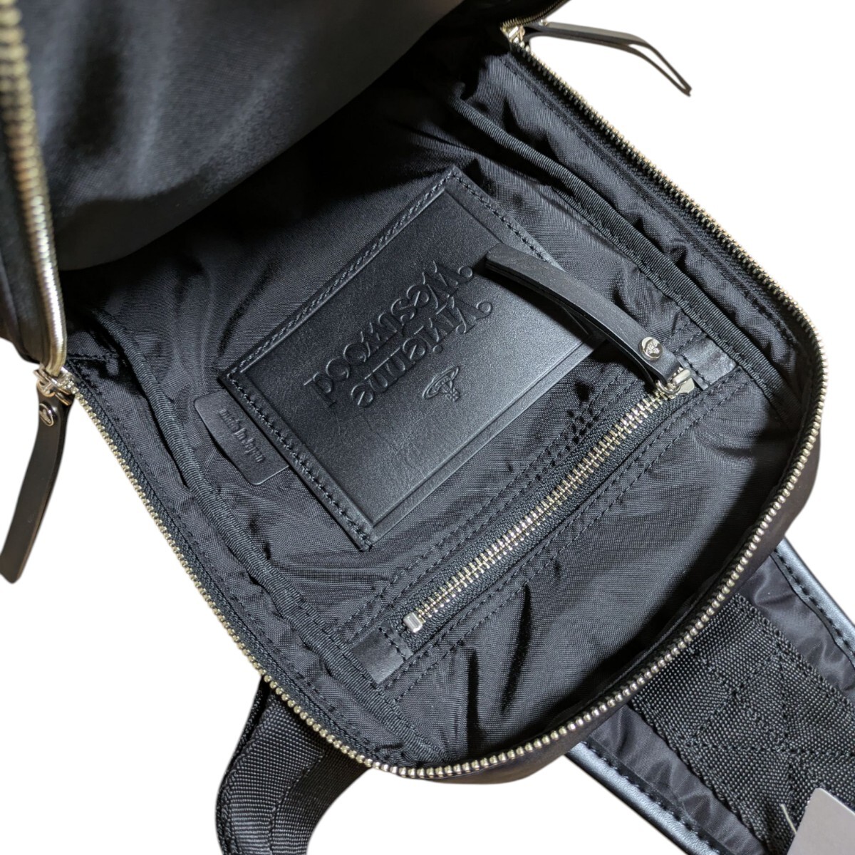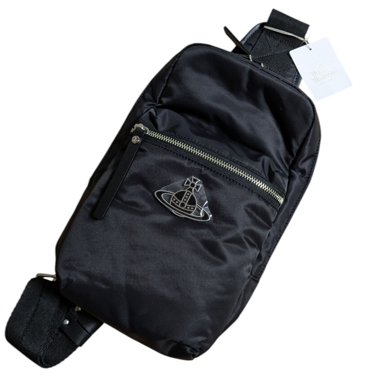 ヴィヴィアンウエストウッドのORBが本体中央にデザインされたボディバッグ。