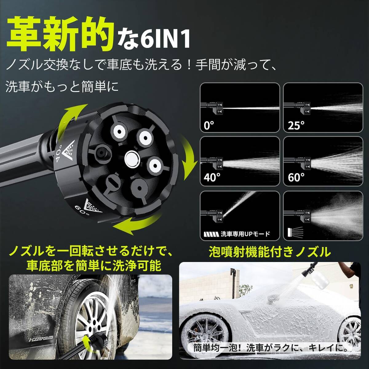 高圧洗浄機 コードレス 充電式【革新6in1ノズル 50分長時間駆動】充電式高圧洗浄機強力噴射13M 日本語取扱説明書 洗車