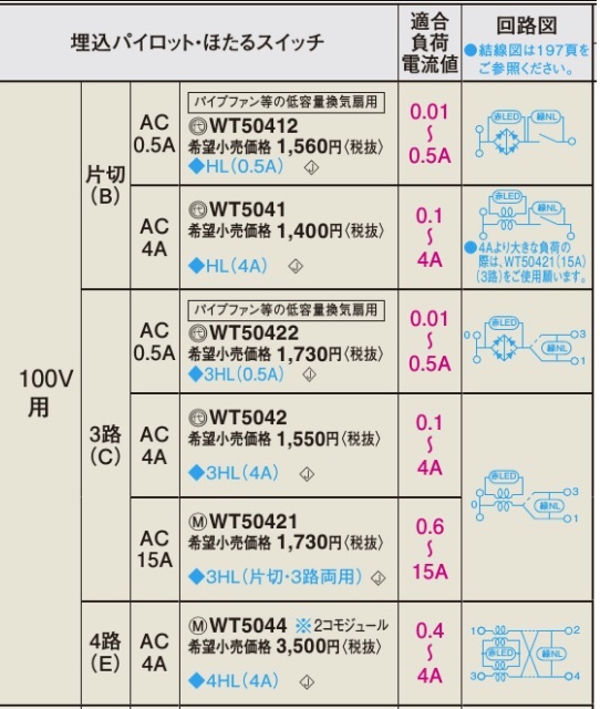 Panasonic WT50422 1個から 複数あり 埋込パイロットほたるスイッチC 0.5A 3路 コスモシリーズワイド21 パナソニック