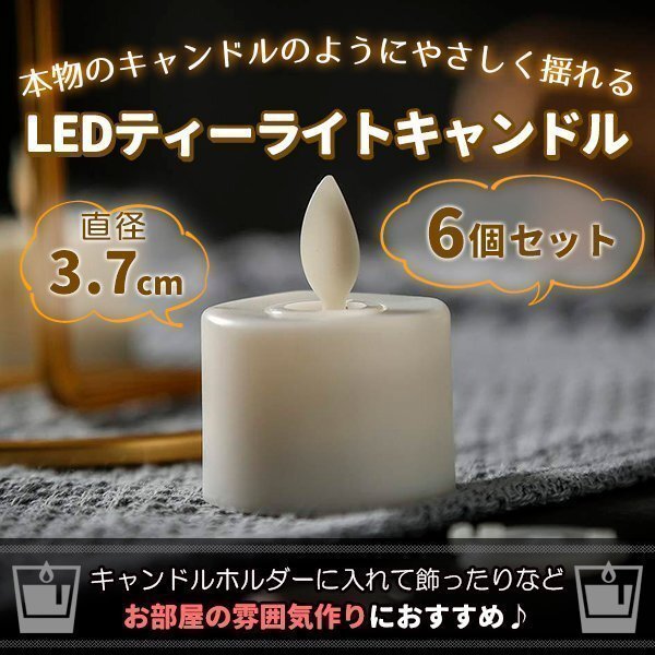LEDキャンドル ティーライト 3.7cm 6個セット おしゃれ リモコン付き ゆらぎ タイマー機能 電池式 北欧 かわいい 自動消灯 自動点灯