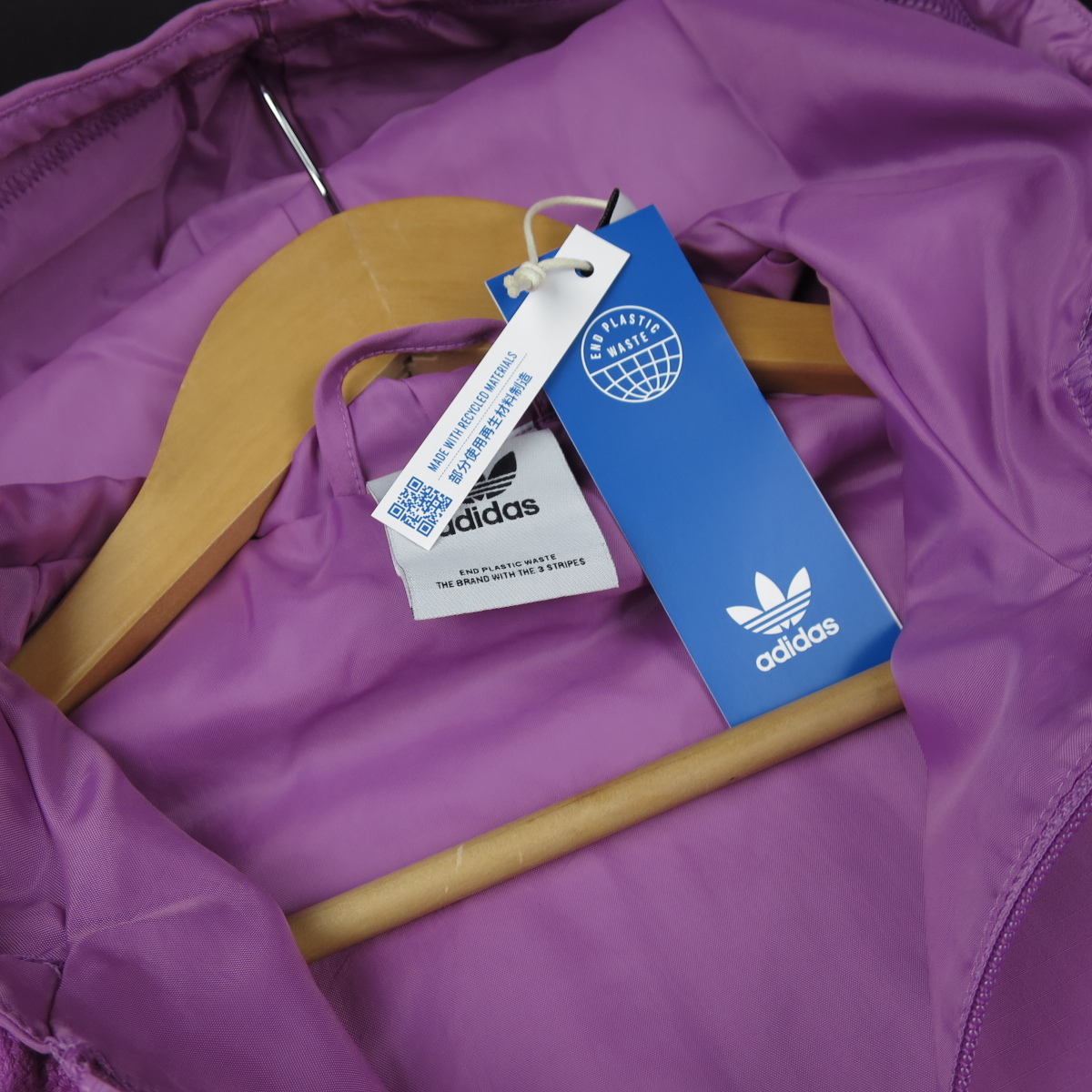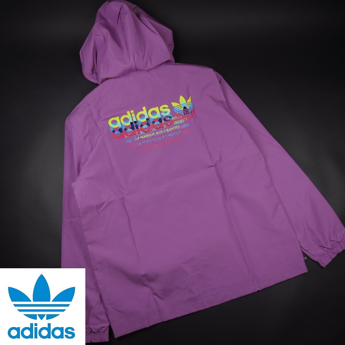 グリッチなアディダスのトレフォイルロゴをあしらい、00年代初頭のコンピュータテクノロジーに回帰したメンズウィンドブレーカー。
