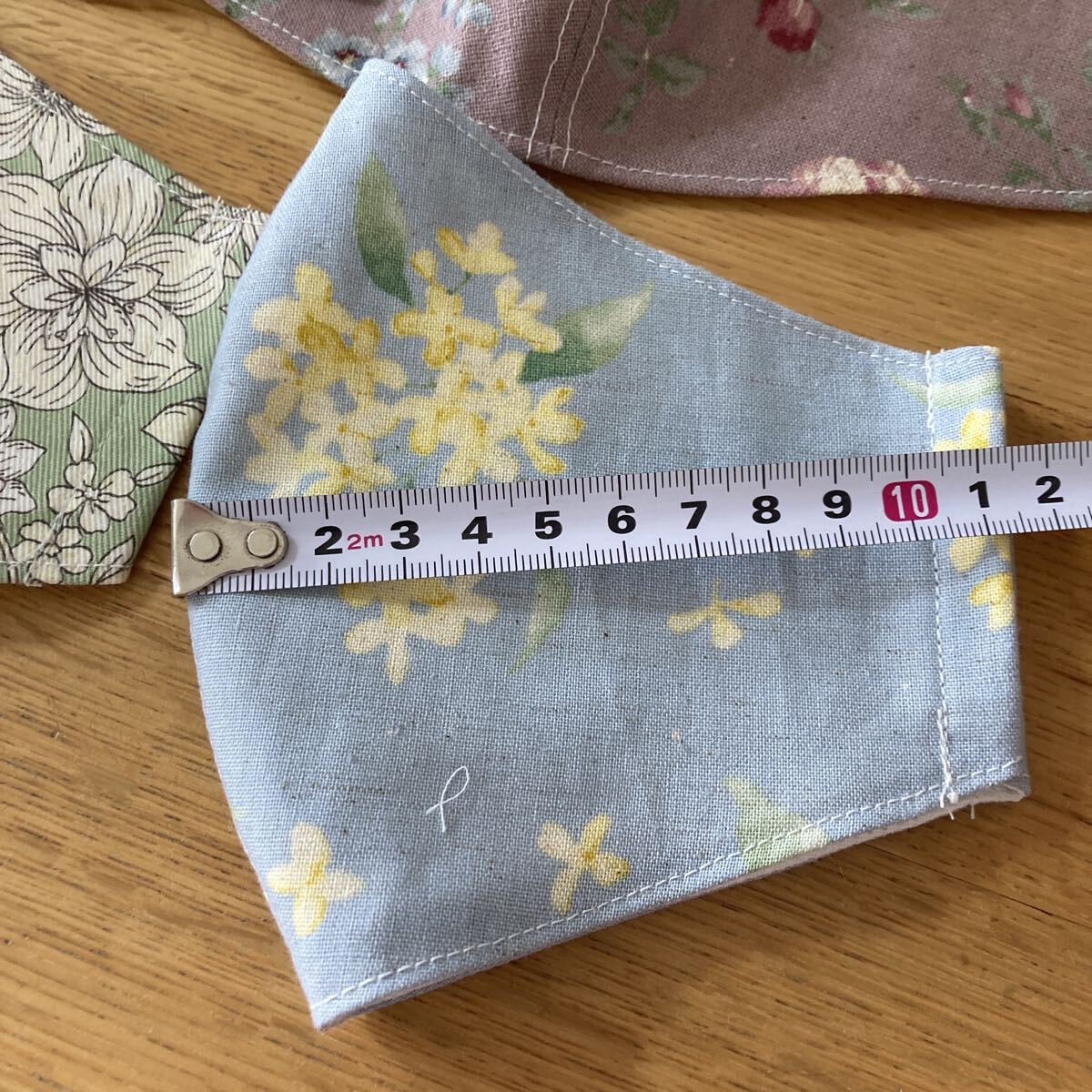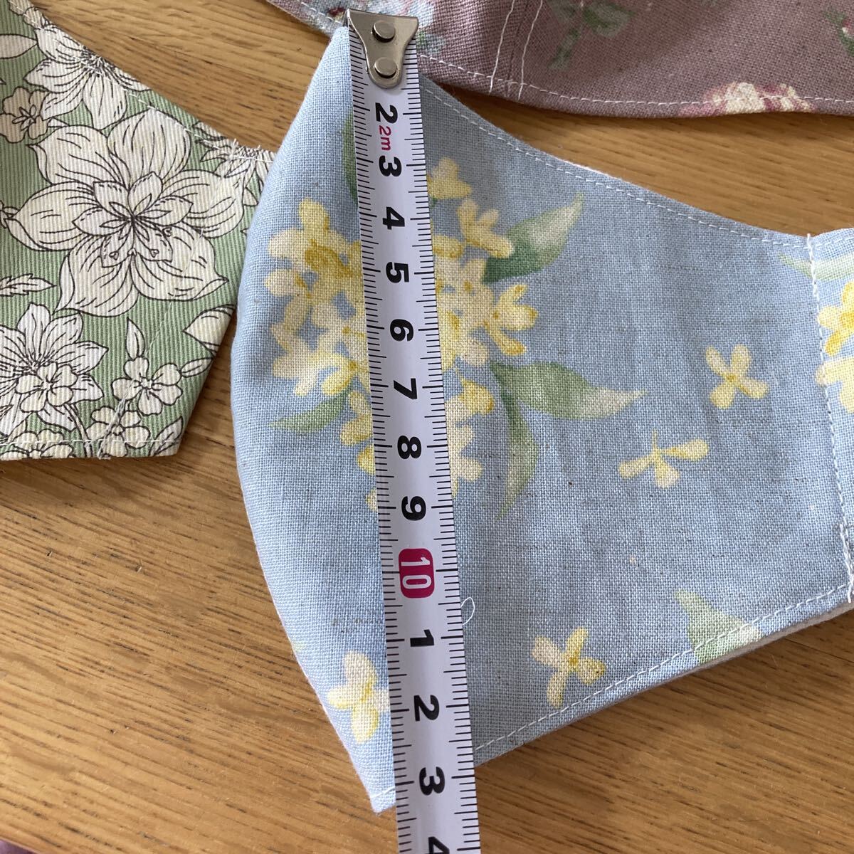 ハンドメイドです。素人作成ですので多少の左右ゆがみ大きさの誤差などあり。気になさる方の入札はお控えください。サイズはご自身でお確かめください。裏はダブルガーゼ です。ゴムはおつけします。
