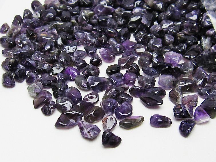 | ■商品名: アメジストさざれサイズ:中 ■商品ID: T712-2 ■商品重量:約 500g ■商品サイズ:商品サイズ:未測定 【アメジストクォーツ(紫水晶)】 アメジストは鉄分によって紫色に発色した水晶の一種です。 名称はギリシャ語で酒の意味のmethyと否定辞のa、つまり「酒に酔わない」「この石でできた盃で酒を飲めば悪酔いしない」に由来するとされています。 「酒に酔わない」と言われる通り、アメジストは体調面への作用が大きく、血液を浄化して解毒、解熱作用を高め皮膚病の治療や不眠を解消するのにも用いられたと言われています。 アメジストは真実の愛を導く愛の守護石とも呼ばれ恋愛運UPの石としても広く知られています。 理想的な出会いをもたらす効果や持ち主に美や調和を与え、セクシーな魅力を引き出すとのことですので恋愛成就のお守りとしても最適といえるでしょう。 また、くよくよしたり傷ついたりしている時には癒し、目前の困難を乗り越えていけるように精神を強くするヒーリング効果も期待できます。 不眠にも効果があるとされていますので、ストレスを抱えている人にもおすすめの石です。 ⇒ アメジストをもっと詳しく ◆ワンポイント情報 アメジストは産地によって結晶や色味の傾向が変わります。 例えばブラジル産は結晶が大きめだが色味は少し薄め、ウルグアイ産は結晶は小さく細かいが色味は濃紫の傾向、メキシコ産は細長い結晶でライラックの様な明るく透明感のある紫など特徴が異なります。 産地による好みが人によって分かれるのもアメジストならではと言えるでしょう。 |