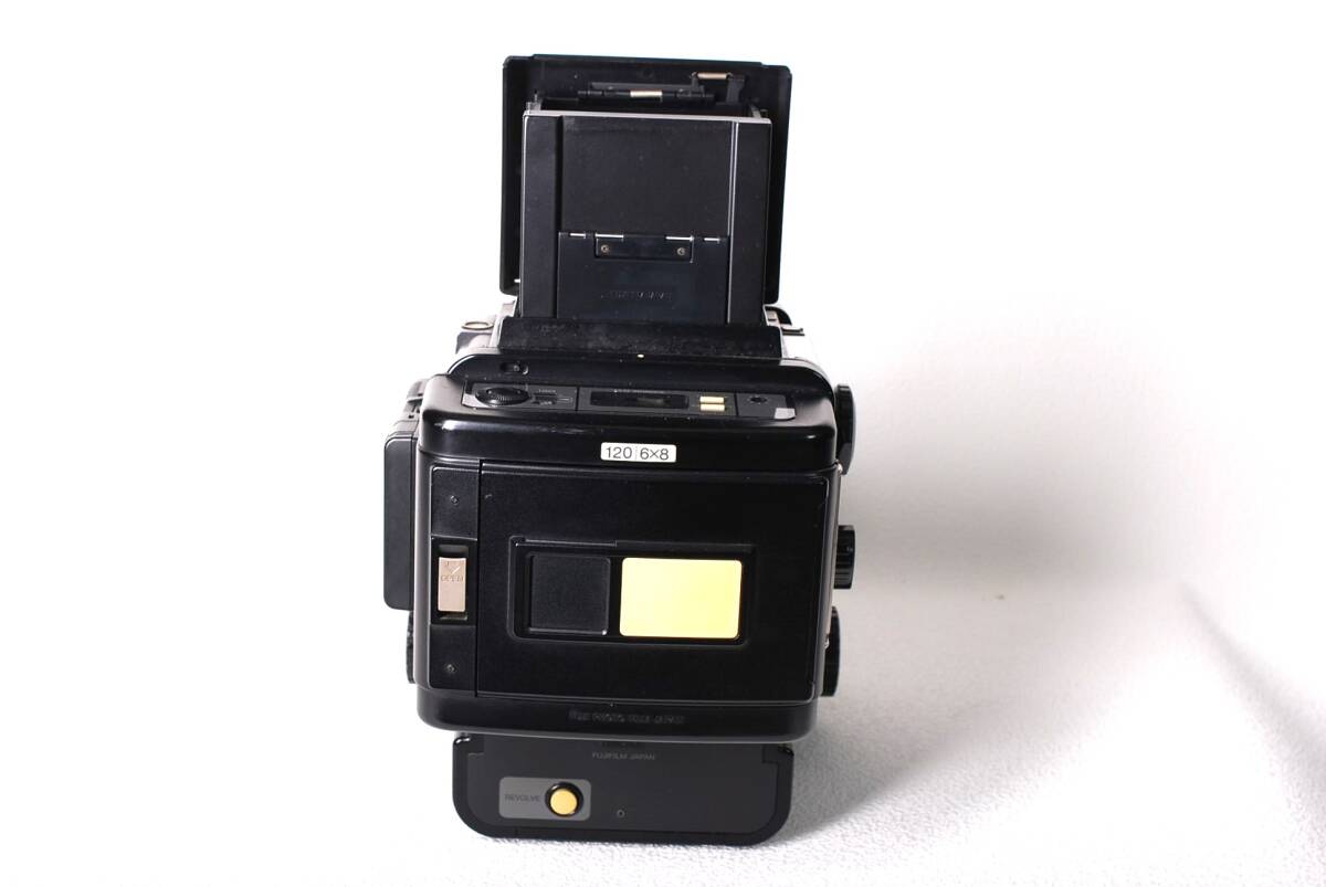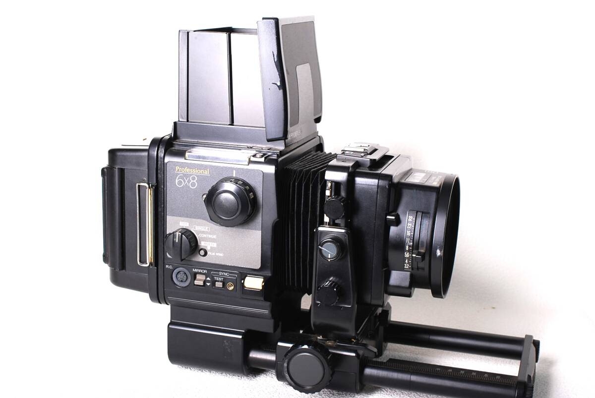 フジがスタジオ撮影用に本気で作ったカメラ、使いやすさと多数のレンズ構成が特徴です。特にこの紅葉時期シャープで色乗りの良いレンズをフィールドに持ち出して使いたいですね。電池は単三電池、各部順調に作動しています。ボデイは小傷が全体にあります、特にファインダー上部ニ大き目な引っかきキズが有ります。