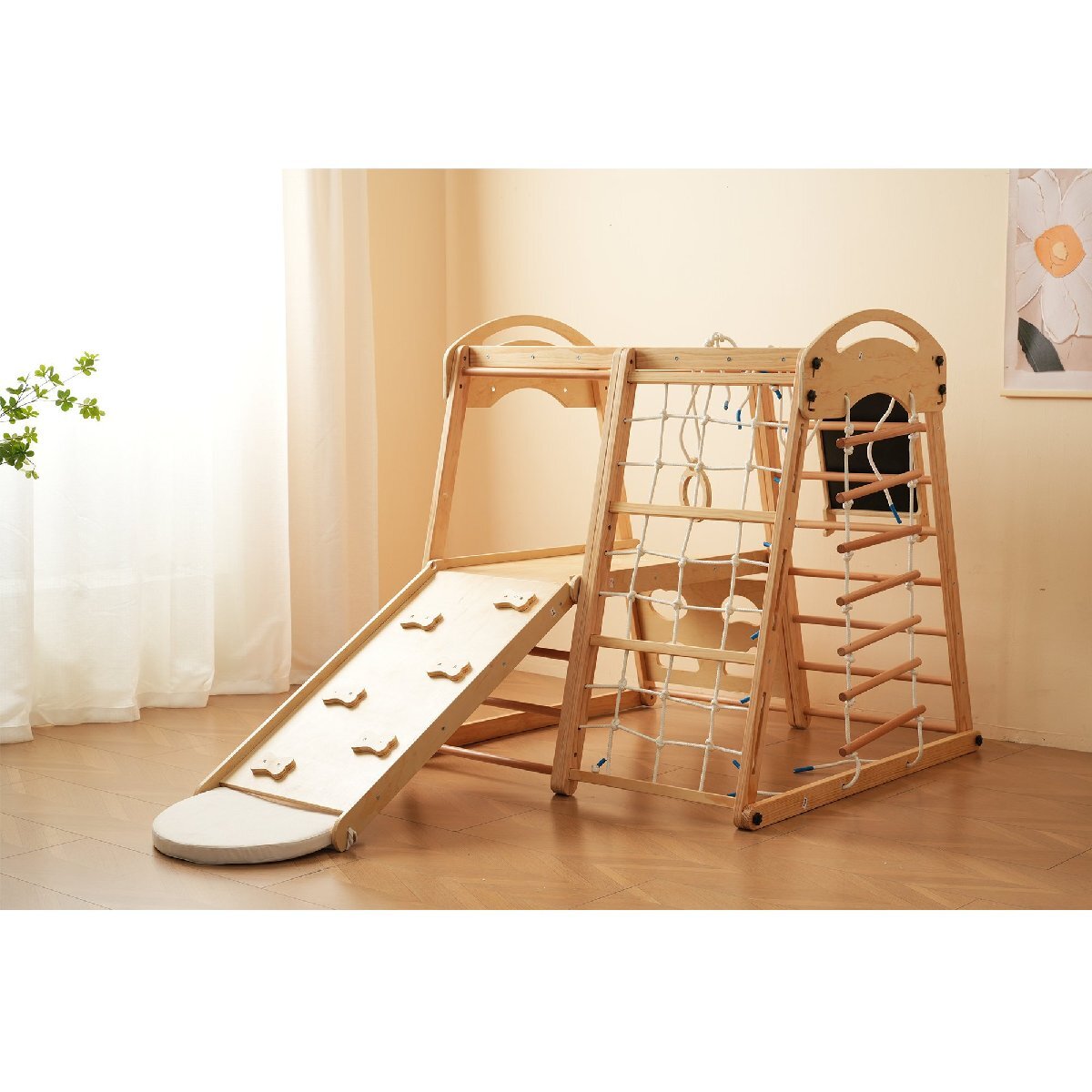 【国内発送】大型遊具 ジャングルジム 10Ways 折り畳み収納 黒板付き ハンモック 滑り台 室内 木製 天然木 耐荷重80kg 室内ジム 遊具 室内