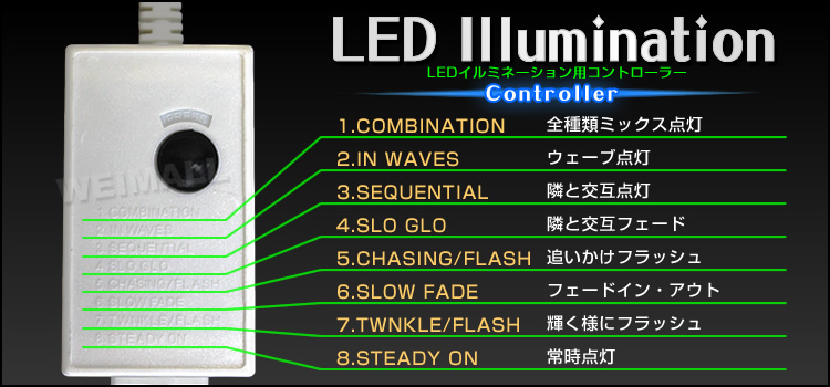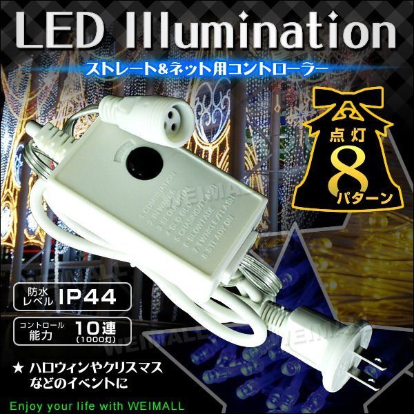 | LEDイルミネーション用 電源コントローラー!100Mまで対応 8パタン点灯 簡単連結仕様(連結部分非防水設計) |