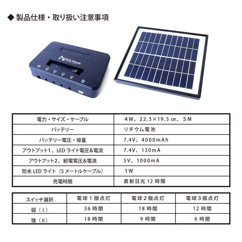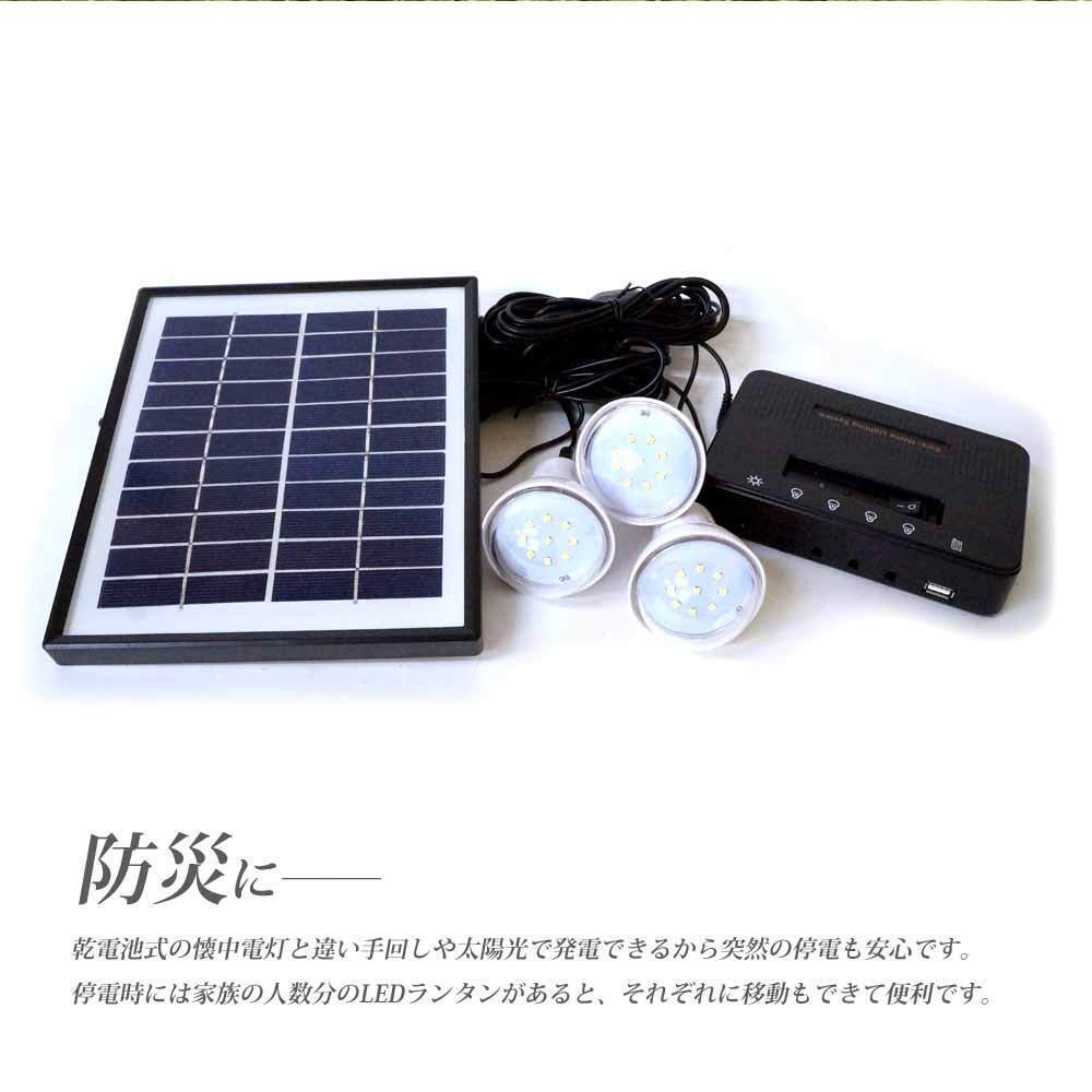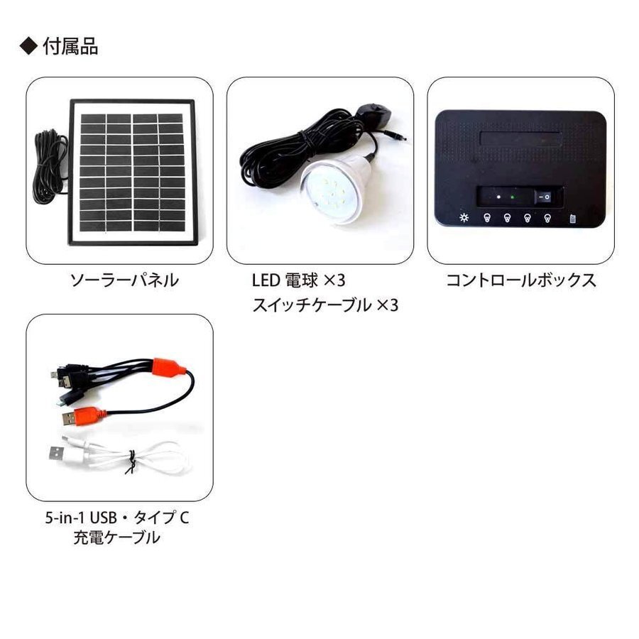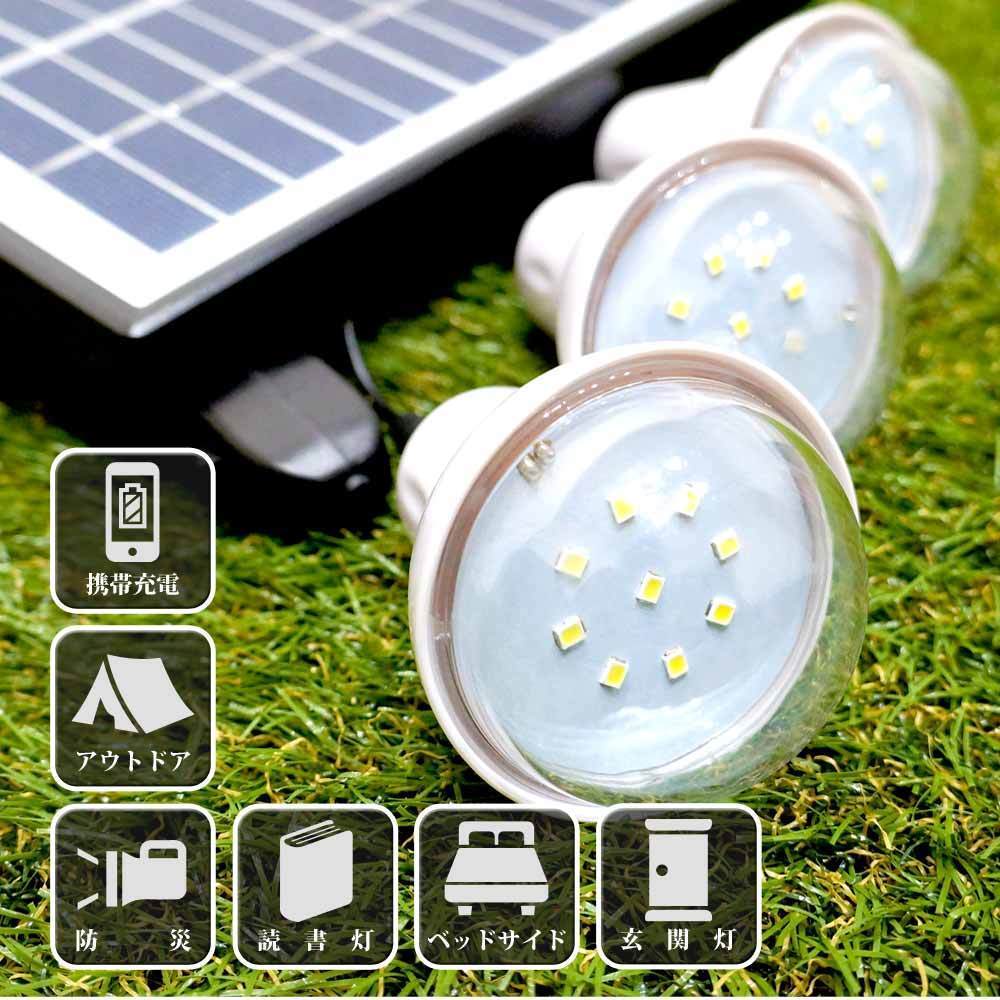 ソーラーLED照明キット 充電式 ポータブル ソーラーパネル ソーラー充電器 モバイルバッテリー 車中泊 キャンプ アウトドア XL924