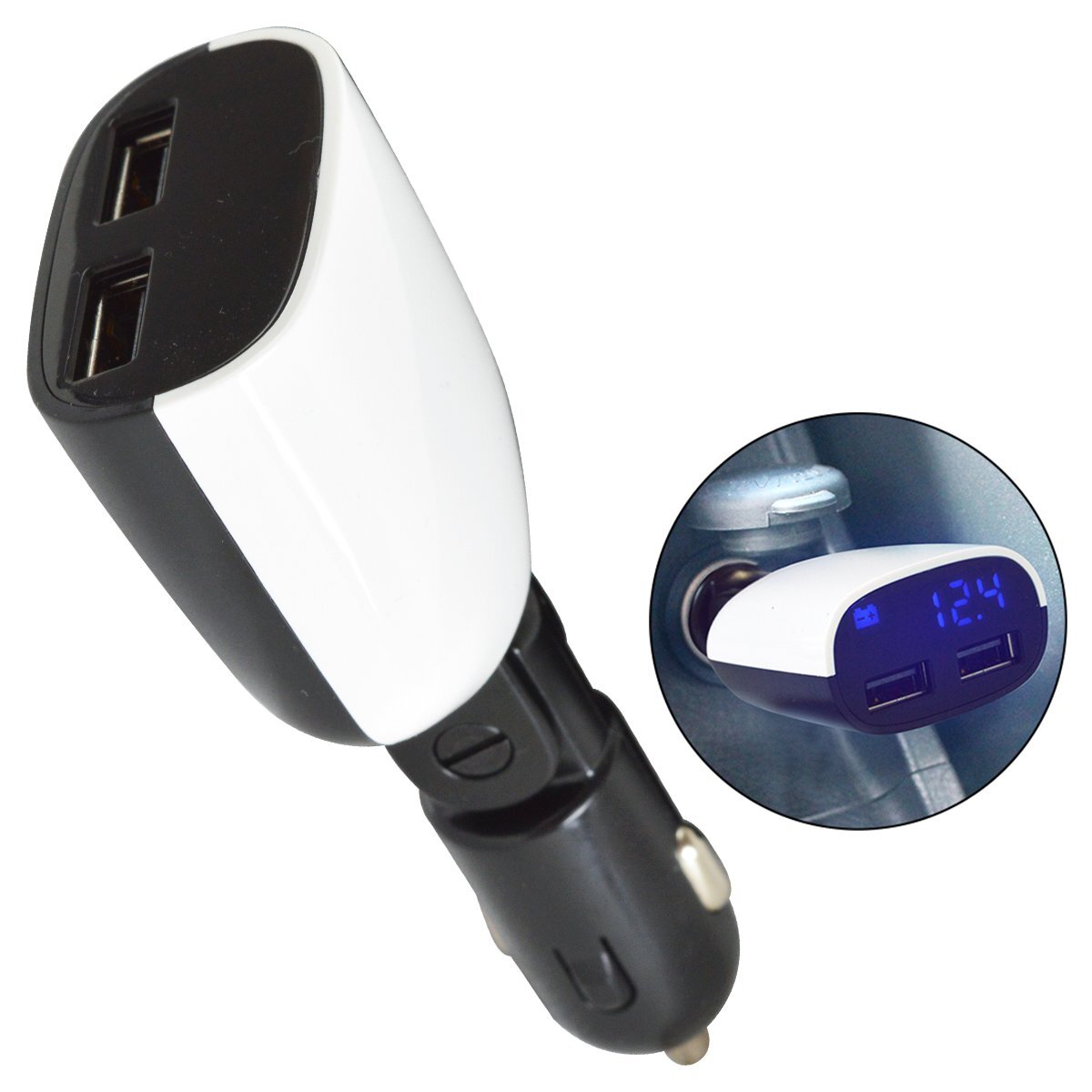 【新品即納】LED 2ポートUSB シガープラグ DC12V/24V 電圧計 スマホ充電 デジタル表示 USBポート 充電チャージャー