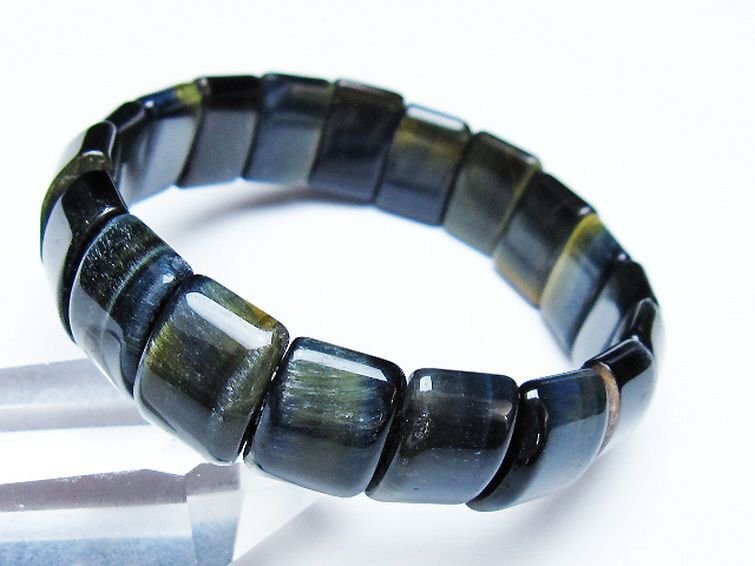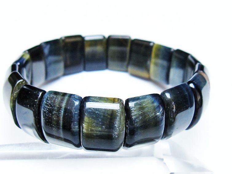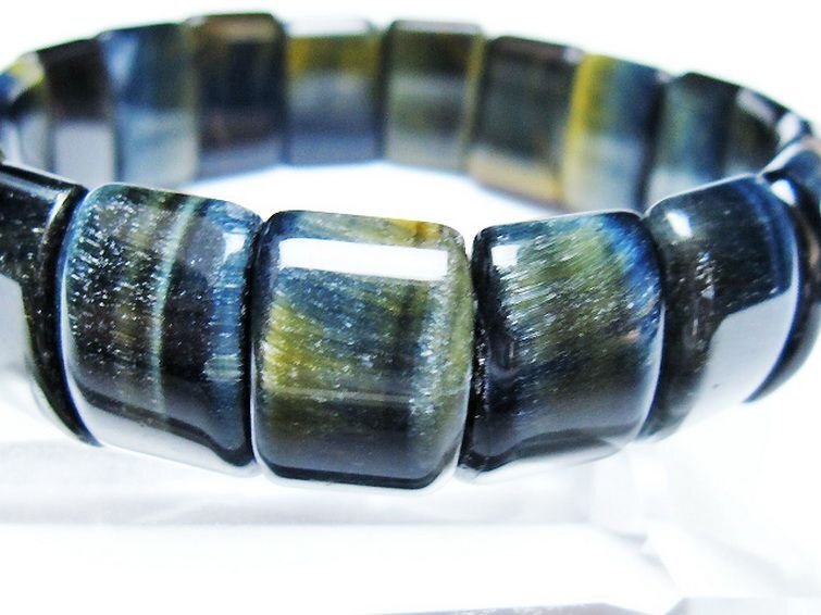 | ■商品名: ブルータイガーアイ※青虎目石バングル ■商品ID: T173-5127 ■商品重量:約 35g ■商品サイズ: 高約:15mm 横約:11mm 厚約:6mm 内径円周約:163mm(±5mm) 【タイガーアイ(虎目石)】 タイガーアイは角閃石の一種のクロシドライト(青石綿)に石英が染み込んで酸化し、茶色や黄金色になったものです。 研磨すると光の当たり具合によってキャッツアイ効果、またはシャトヤンシー効果と呼ばれる猫の目のような光の筋が見られ、その輝きと黄金色と褐色の縞模様が虎の眼に見えることからこの名前が付けられました。 ベーシックな金茶色の他にも様々な色合いがあり、温度が高い環境で生成されると深い赤みを帯びたレッドタイガーアイになります。 この他にクロシドライトが酸化せずに生成された灰色のグレータイガーアイは「ウルフズアイ(狼目石)」、濃青色をしたブルータイガーアイは「ホークアイ(鷹目石)」と呼ばれ、タイガーアイとは区別される場合があります。 タイガーアイは視野を広げ正しい判断力と行動力で成功へ導くとされ、ルチルクォーツに匹敵するほどの金運・仕事運アップストーンとして高い知名度と人気を誇っています。 また男性イメージの強い石ではありますが、強力な邪気払い・トラブル回避の効果も持ち合わせていますので女性にはストーカーやセクハラ対策のお守りとしても有用です。 ⇒ タイガーアイをもっと詳しく ◆ワンポイント情報 タイガーアイは塩分によって劣化しやすいので汗が付いた場合は柔らかい布で拭き取るようにし、塩を用いた浄化は行わないように注意しましょう。 |