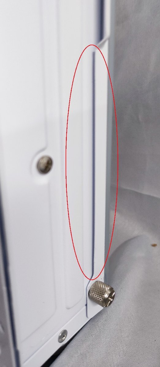 ゆがみ(浮き)がありますが、手回しネジは締まります。パネルが閉まらないことはございません。