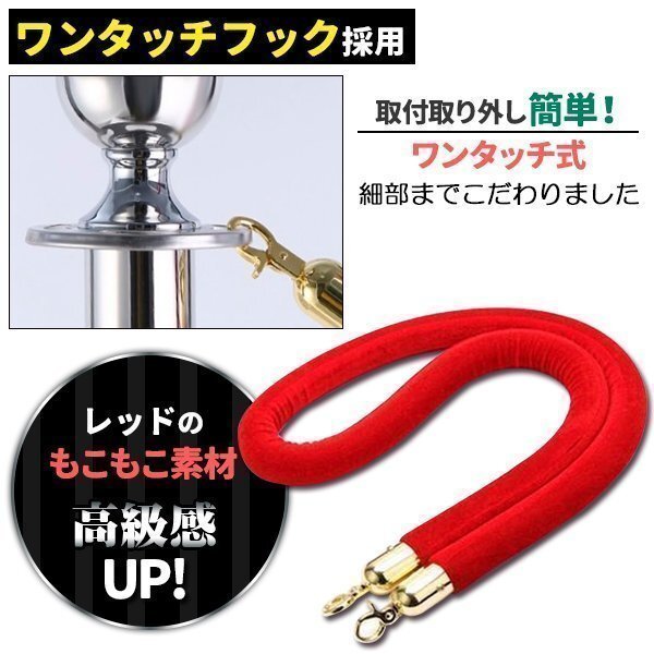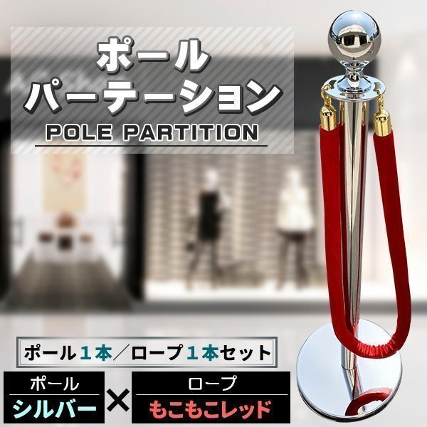 ポールパーテーション 1本 セット シルバーポール レッドロープ もこもこ ガイドポール ポール スタンド パーテーション 通路