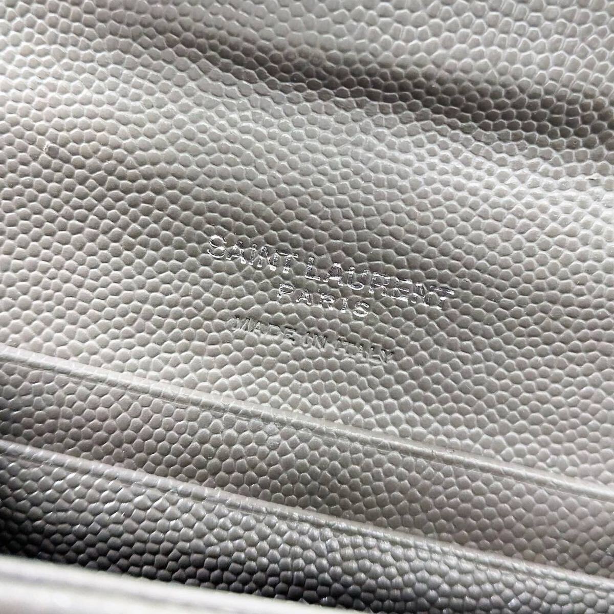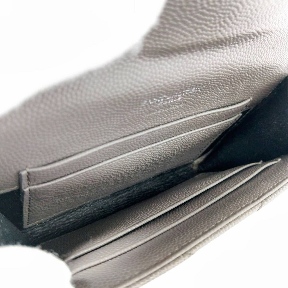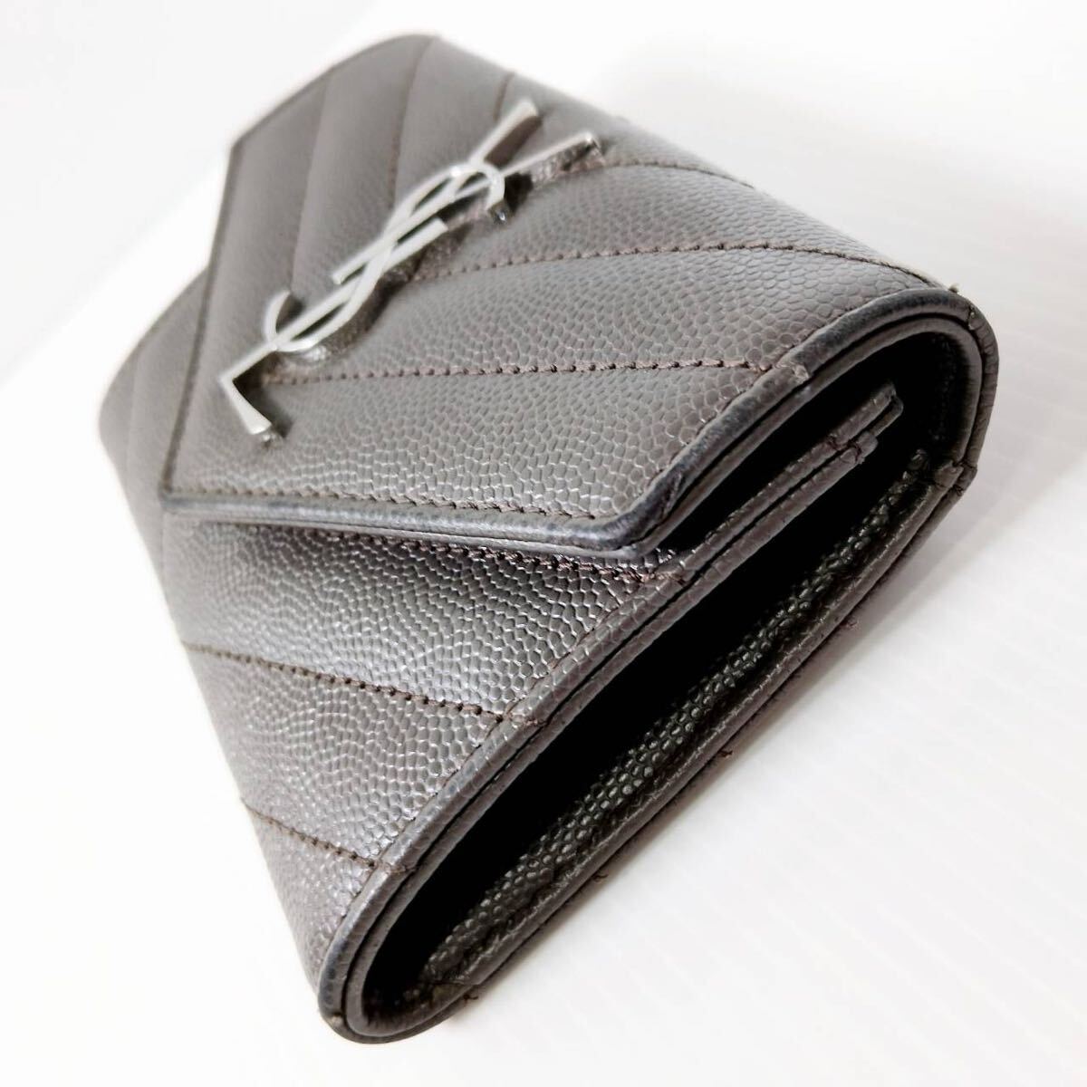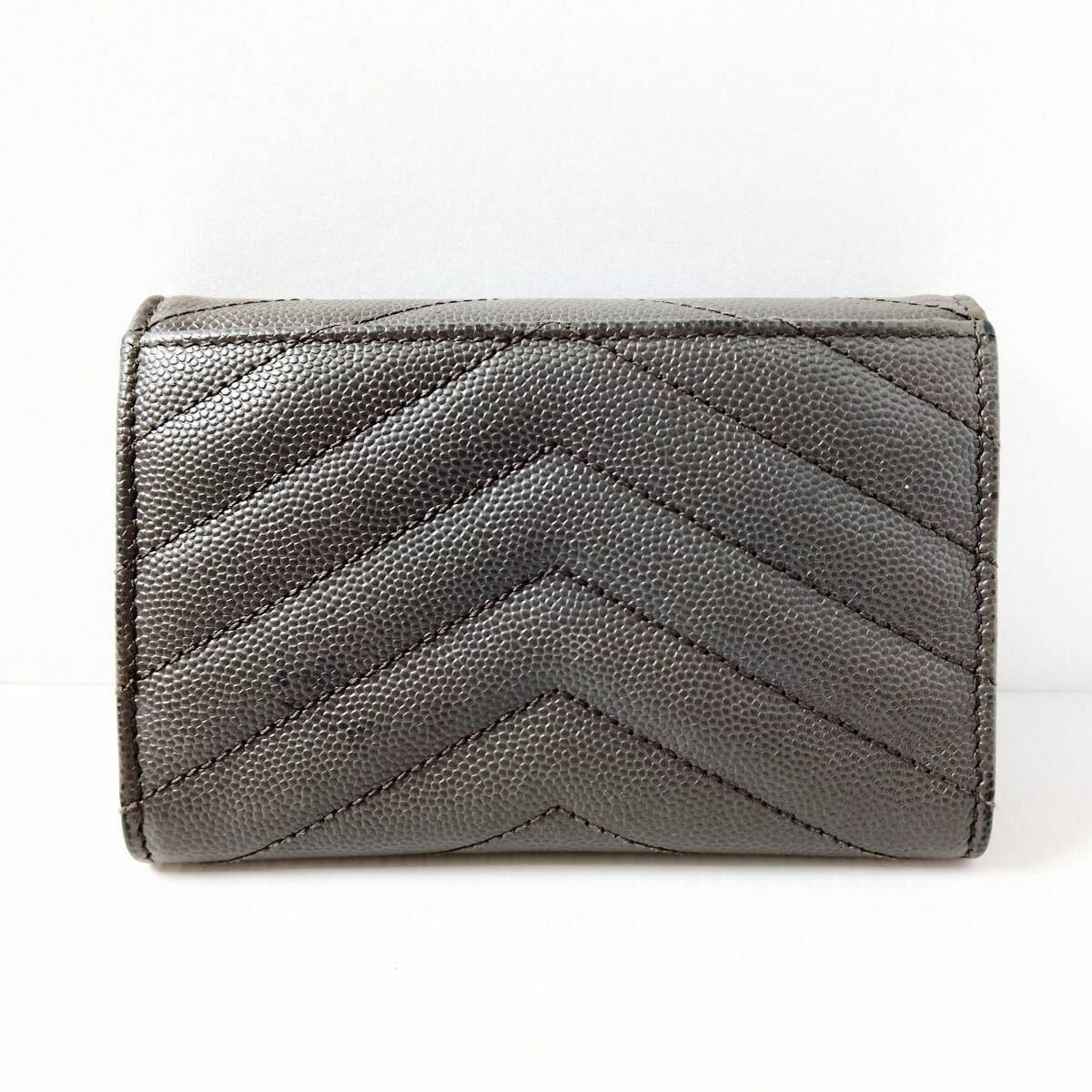 YSL イヴ・サンローラン カードケース グレー レザー SAINT LAURENT PARIS Vステッチ 三つ折り財布 ミニウォレット レディース メンズ