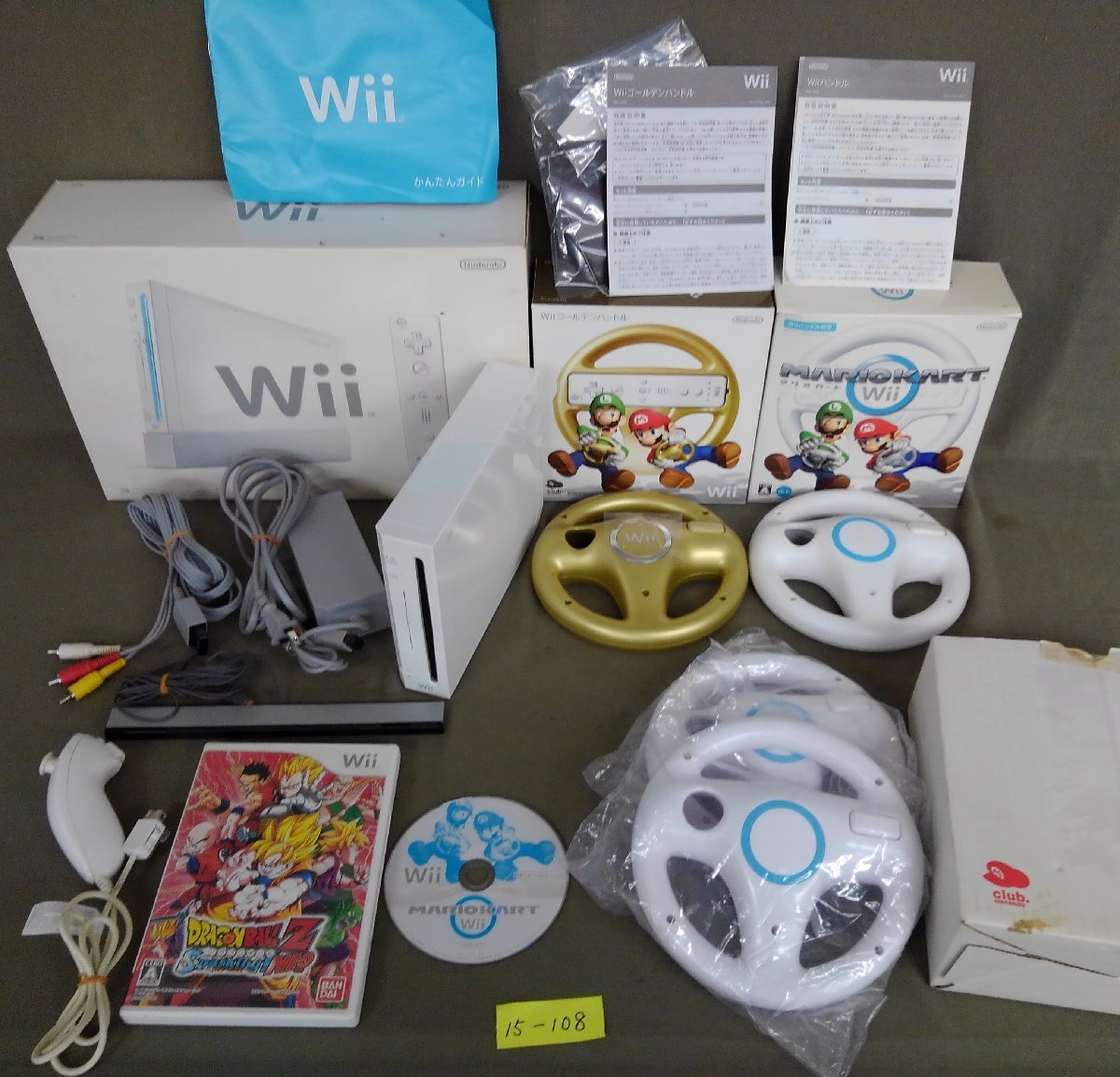 ●★15―108★ゲーム機まとめ 任天堂 Wii RVL-001 本体 通電確認済/Wiiハンドル3点 ゴールデンハンドル1点など 大量セット[140]