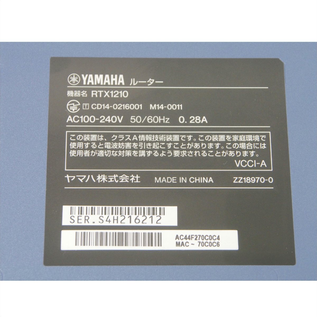 | 商品名 | 1円【ジャンク】YAMAHA ヤマハ/ギガアクセスVPNルーター/通電のみ確認/RTX1210/78 |