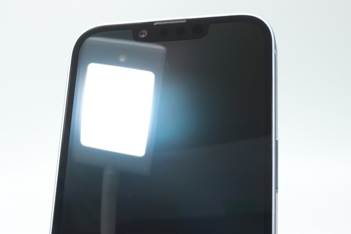 ・インカメラ撮影時、写真ともに横(青矢印)に光のラインが写り込みます(写真6 ※インカメラで撮影した写真を撮影してます)