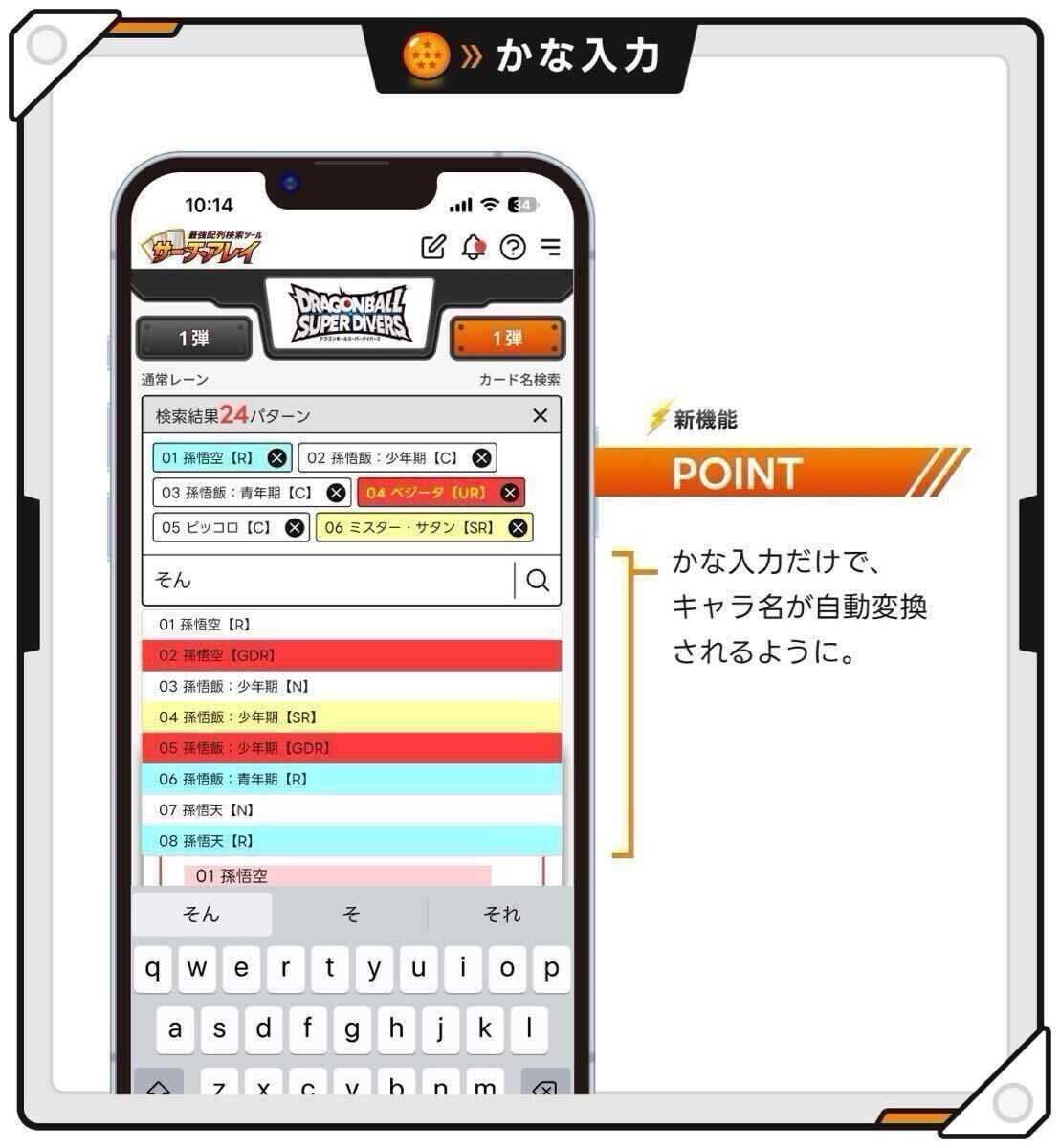 ◆ 商 品 説 明 ◆ | ・画像のカード(3弾のノーマル) ※※※※※※※※※※※※※※※※※※※※※※※※ ★落札特典★ ①即決即送信!! ~現在の時点で、確認がとれてる12パターンの配列を即送信~ (※通常分&R以上確定分) ②検索ツールに新機能が続々搭載!! ~配列・画像同時表示などの新機能が搭載~ 【別のゲームも同じアカウントで使用可能!!】 ドラゴンボールスーパーダイバーズやガンバレジェンズなど...(※別途購入が必要) ③稼働後もしっかりサポート!! ~パターン追加次第、逐一配列の更新をさせていただきます~ ※※※※※※※※※※※※※※※※※※※※※※※※ | |