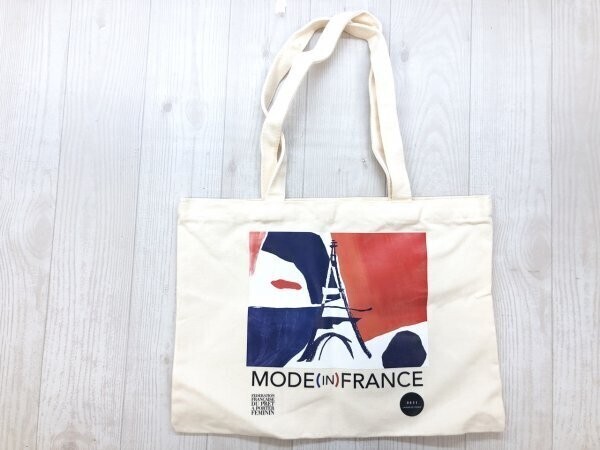 DEFI LA MODE DE FRANCE メンズ レディース エッフェル塔プリント トートバッグ アイボリー です。