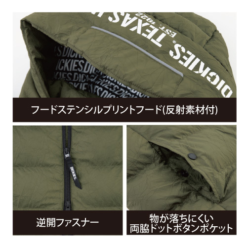 在庫処分!!ディッキーズ 秋冬 防寒 【 D-23001 】ワッシャーファイバーダウン フーディージャケット ■Mサイズ■ブラック色