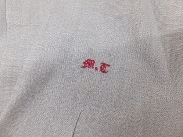 備考/目立つダメージ:袖イニシャル刺繍、汚れ