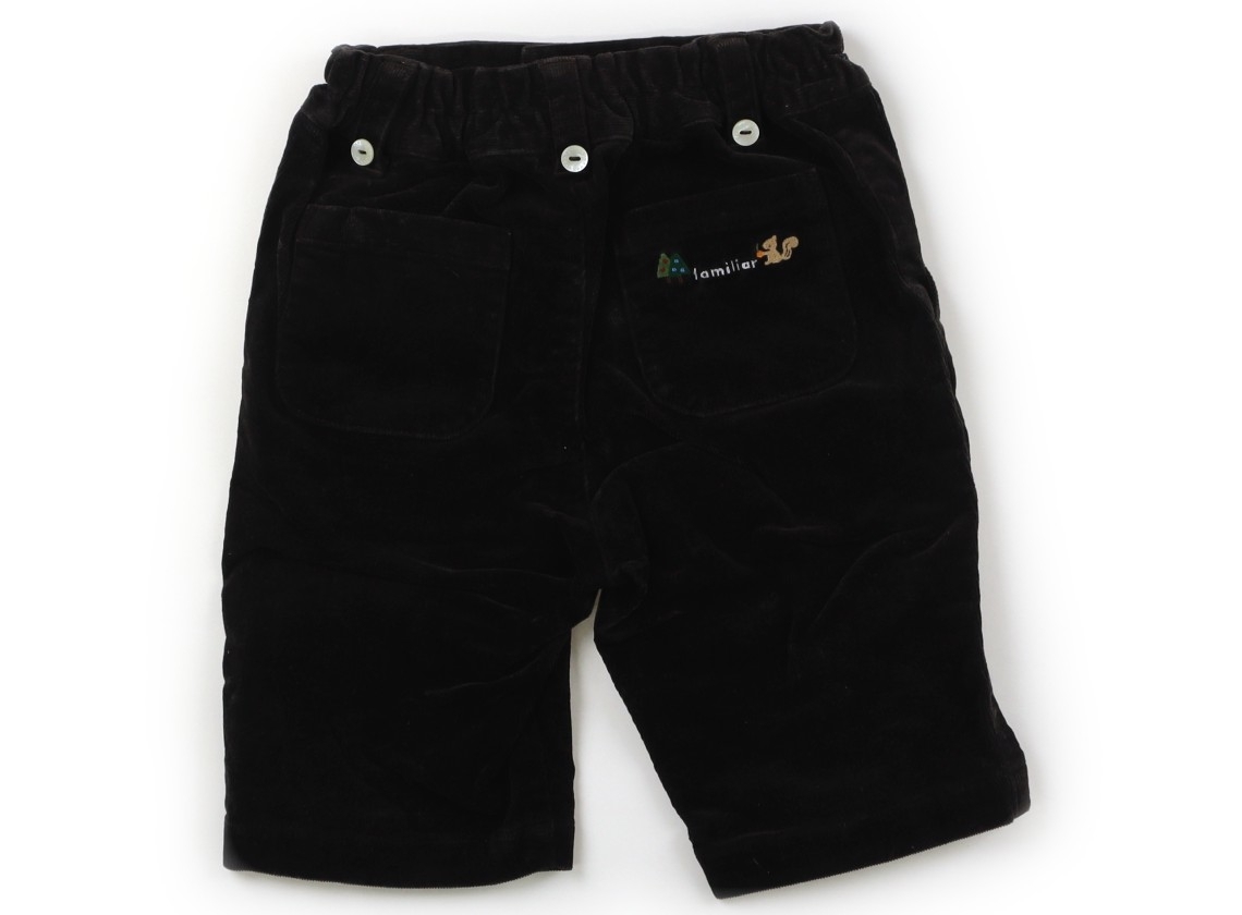 ポリウレタン混コットン素材、コーデュロイ調生地。ウエストは半分ゴムです。色褪せと毛羽立ちがありますが、まだまだお使いいただけそうです。