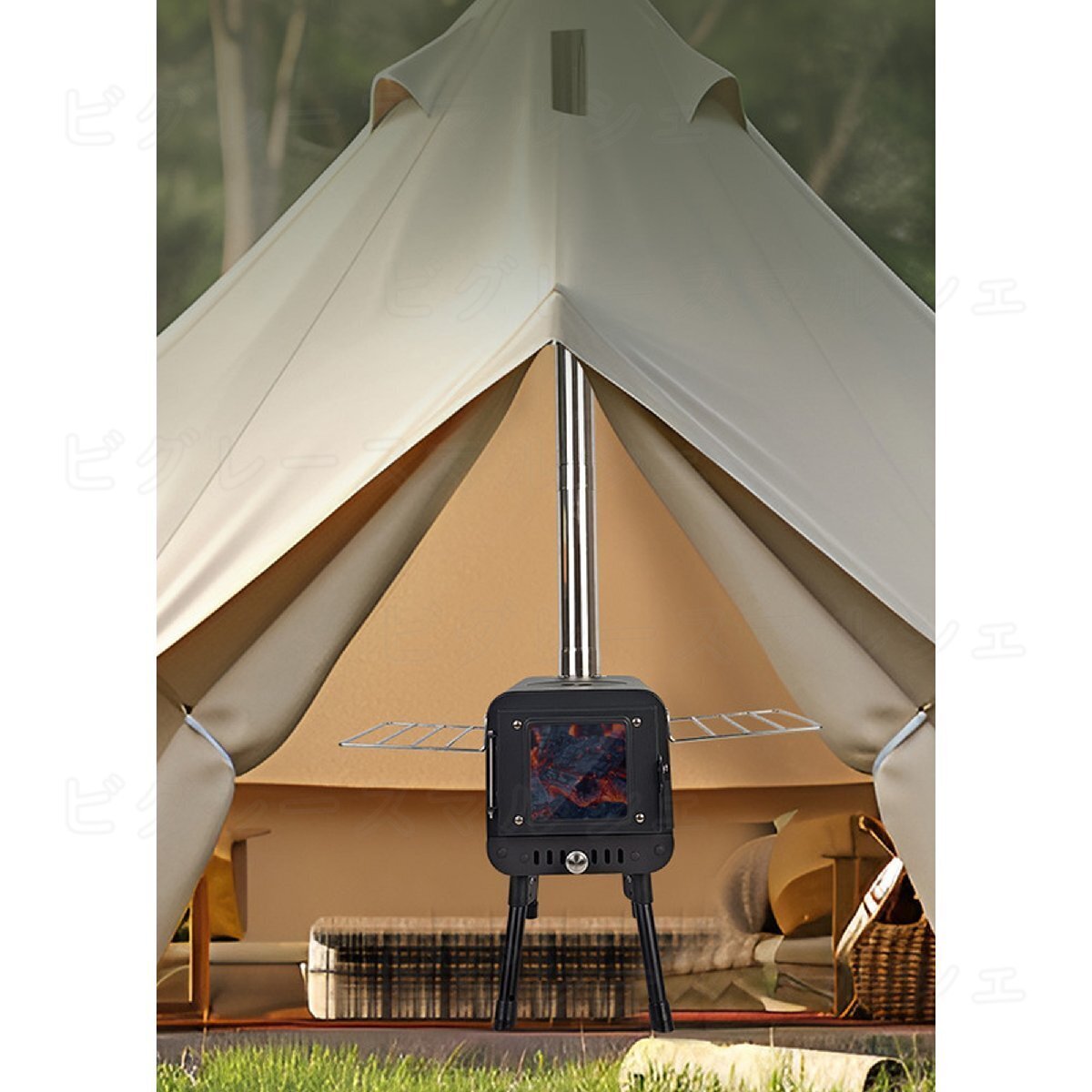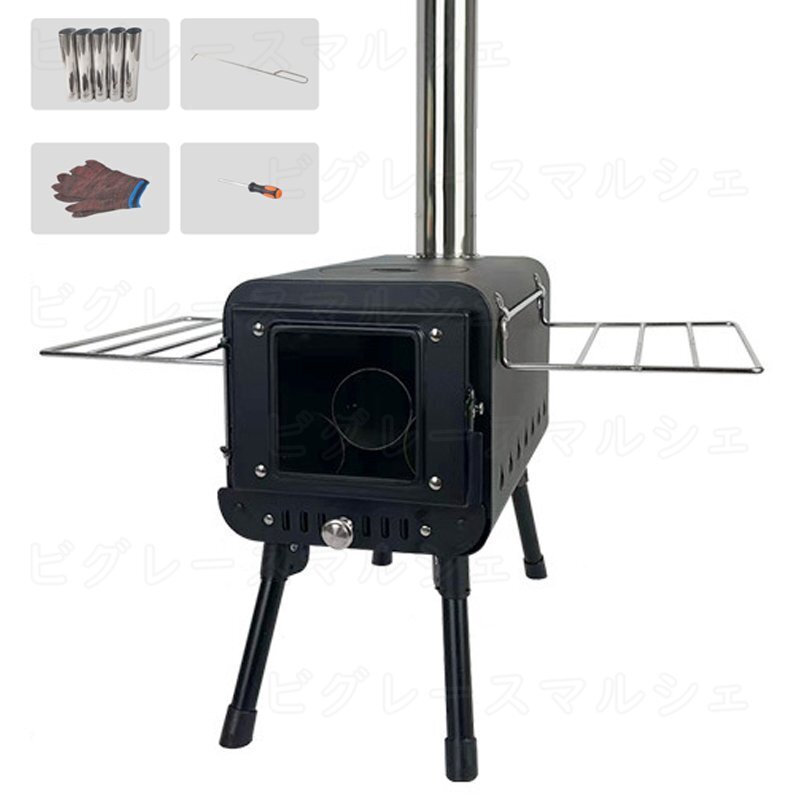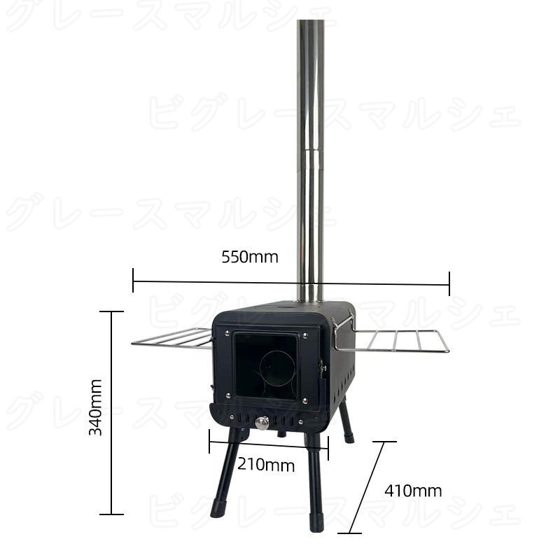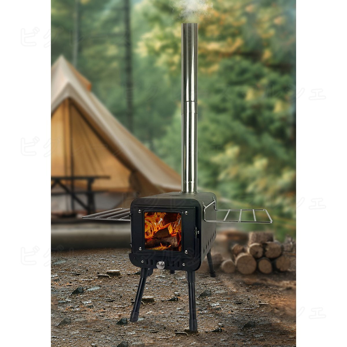 薪 ストーブ アウトドア 調理器具 暖炉 キャンプ 折りたたみ 煙突付き 2面耐熱ガラス窓付き 棚付き 組立式 屋外 焚き火台 ステンレス