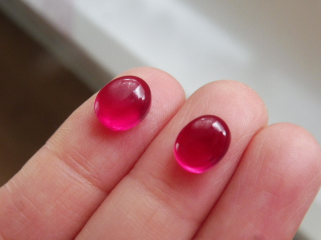 可愛い★鑑別付 ピジョンブラッド ルビー ペア 合計約7ct ルース 裸石 カボション ピアスやイヤリングに!