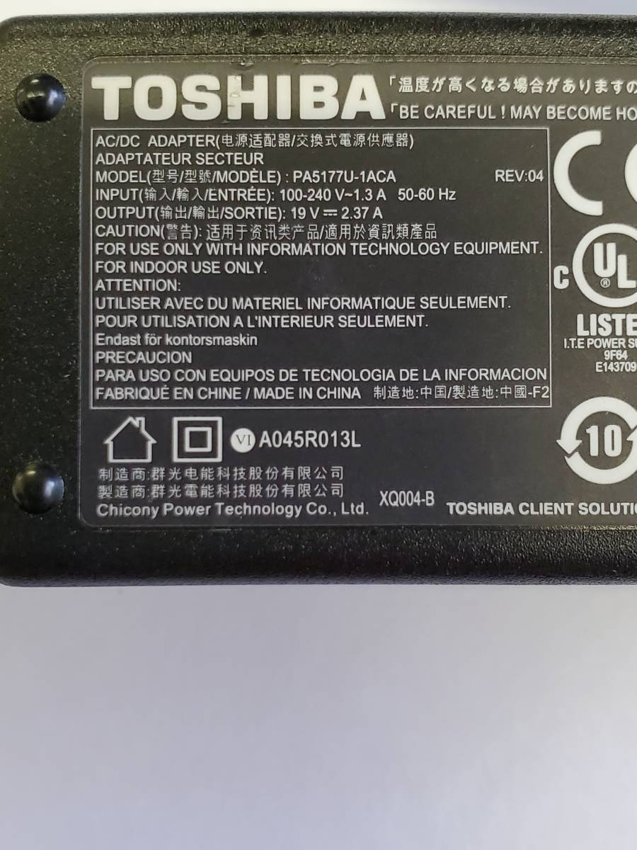 数量限定☆TOSHIBA 純正 ACアダプタ PA5177U-1ACA 19V=2.37A 1.3A 外径5.5 内径2.6 (44