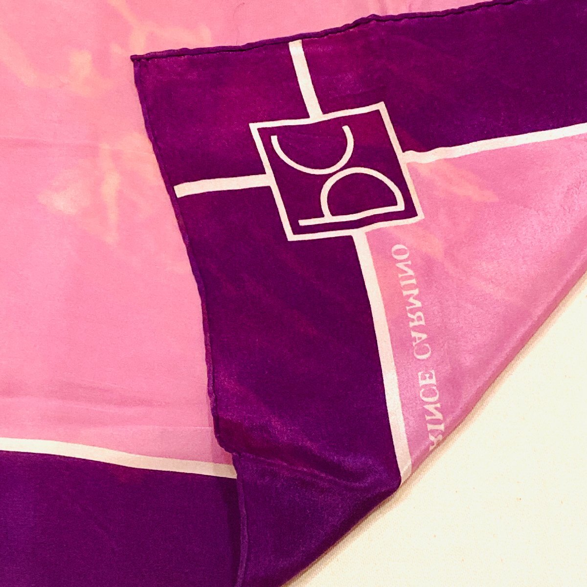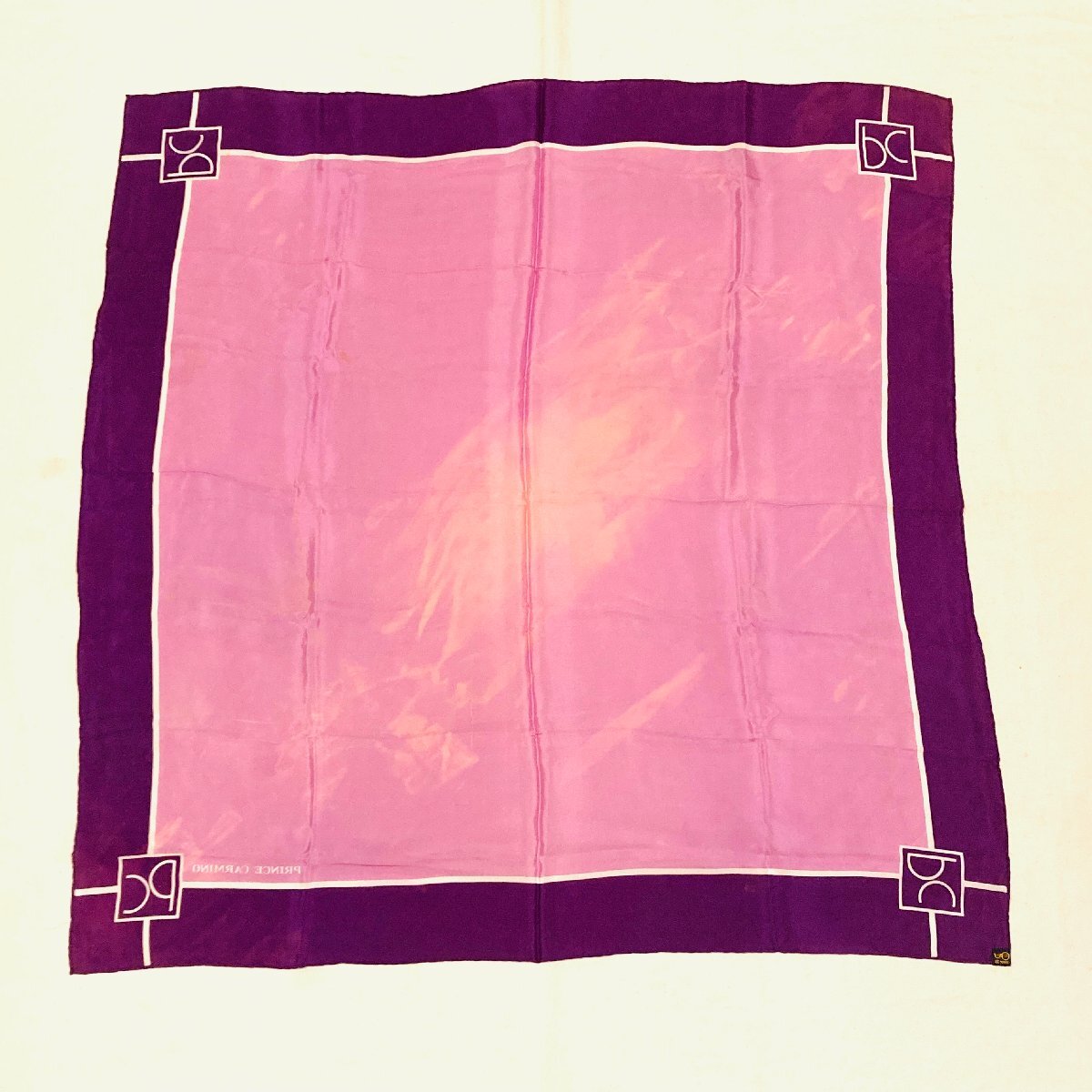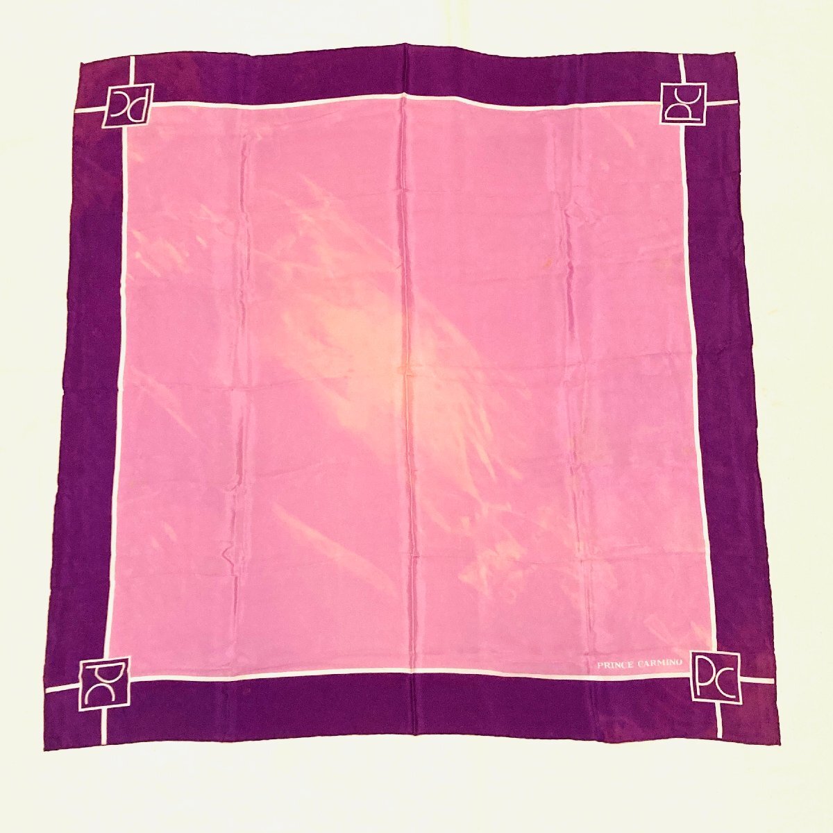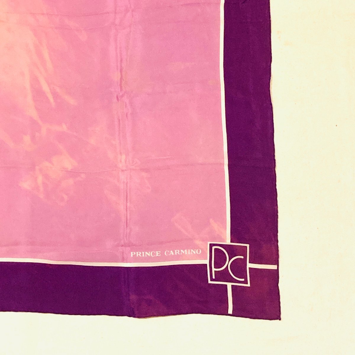 PRINCE CARMINO プリンスカルミノ 絹 シルク/SILK 100% 大判 スカーフ バッグスカーフ パープル系 76 × 76cm