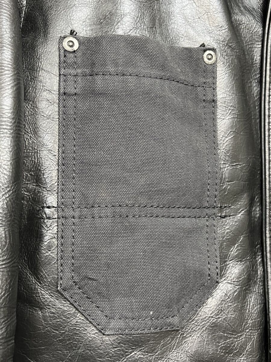 左足胸ポケットのリベットが一つ取れています、写真でご確認ください。