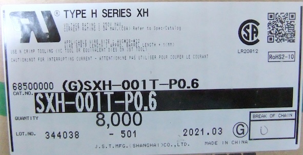 送料込み、未使用品、JST(日本圧着端子)製 XHコネクタ用コンタクト、SXH-001T-P06 200個